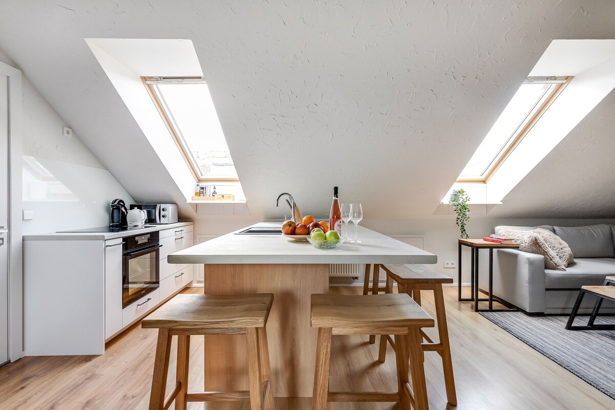 Desfrute deste estúdio único e elegante a poucos passos do coração da Cidade Velha de Vilnius. Rodeado por cafés encantadores, bares acolhedores, um mercado de alimentos interior e um parque com uma excelente vista sobre Vilnius, este estúdio de 38 metros quadrados inclui uma cozinha totalmente equipada, WIFI de alta velocidade (500MB/s), uma TV com Netflix e uma confortável cama de casal. Localizado em um edifício histórico de 120 anos, a apenas quatro paradas de ônibus do Aeroporto de Vilnius e a 10 minutos a pé da estação de trem/ônibus.
