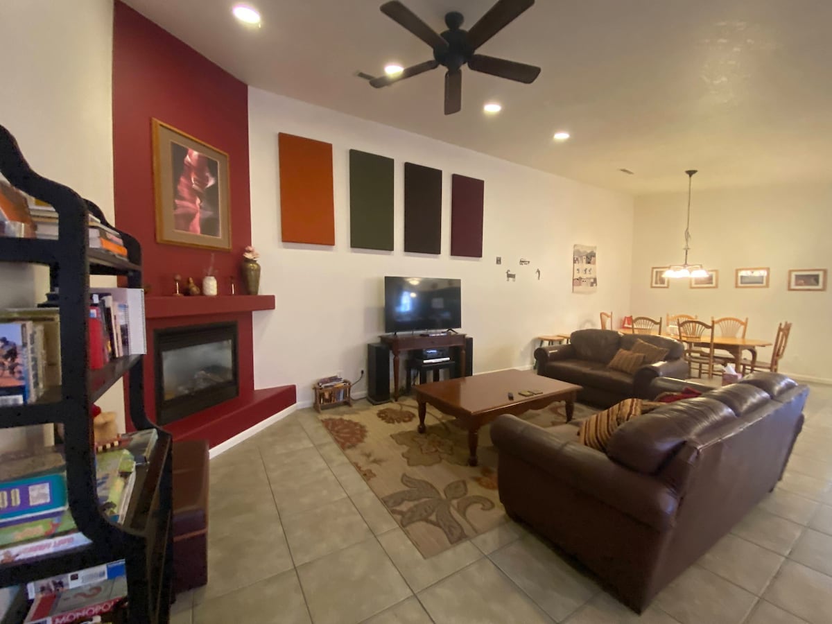 Summer Discounts! Our beautifully furnished home offers lots of comfortable lounging spaces for everyone to relax. With 3 spacious bedrooms, guests can enjoy their own space & then gather in the inviting Great Room. The well equipped kitchen will impress the most discerning cook, stocked with the essentials & accessories you’ll need. Unwind in the Bullfrog hot tub under the stars. Magical. The private, gated backyard provides a safe place for pets, welcome with notice. People are also welcome!