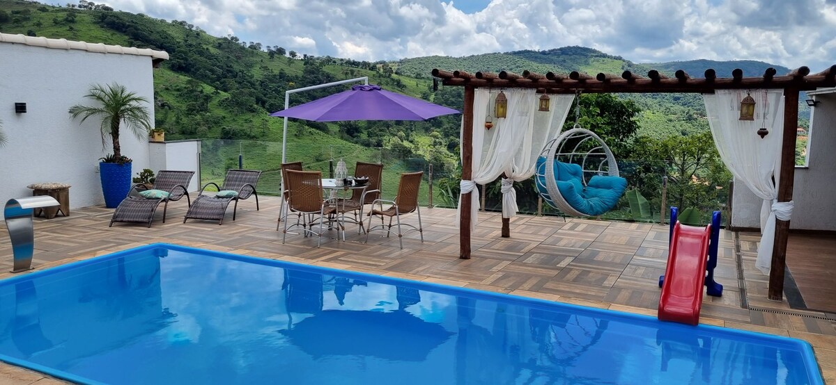 @MoedaBierLoft- A apenas 40 minutos do BH Shopping, e 9 minutos da fazenda Quinzeiro, nossa casa oferece o equilíbrio perfeito entre conforto, elegância e conexão com a natureza. Seja para um momento especial a dois ou um churrasco em família, aproveite uma vista deslumbrante das montanhas. Localizada a 2,7 km da Cachoeira do Azevedo e equipada com internet Starlink, garantimos descanso com praticidade. Pet friendly 🐾, para que toda a família possa aproveitar. Viva uma experiência única!