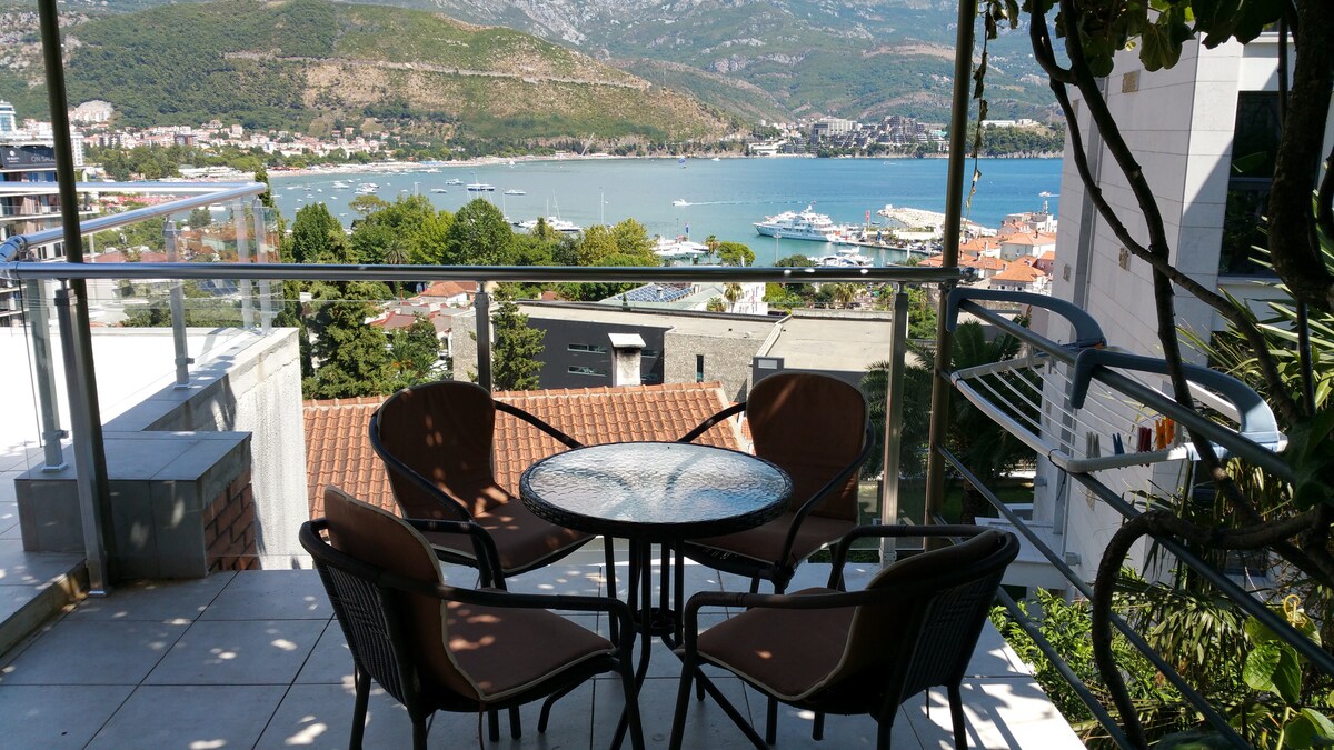 Apartamento para férias agradáveis e confortáveis em parte de Budva, que é pacífico, mas muito perto do centro. Tem terraço com vista para o mar. A 5 minutos da cidade velha. As praias estão perto, restaurantes e bares também. Tem um quarto com banheiro, cozinha e sala de jantar estão no mesmo espaço, sala de estar é com banheiro também. Na sala de estar é um sofá grande onde pode dormir a terceira pessoa. O apartamento fica perto do Hotel Avala e do Hotel Mogren.