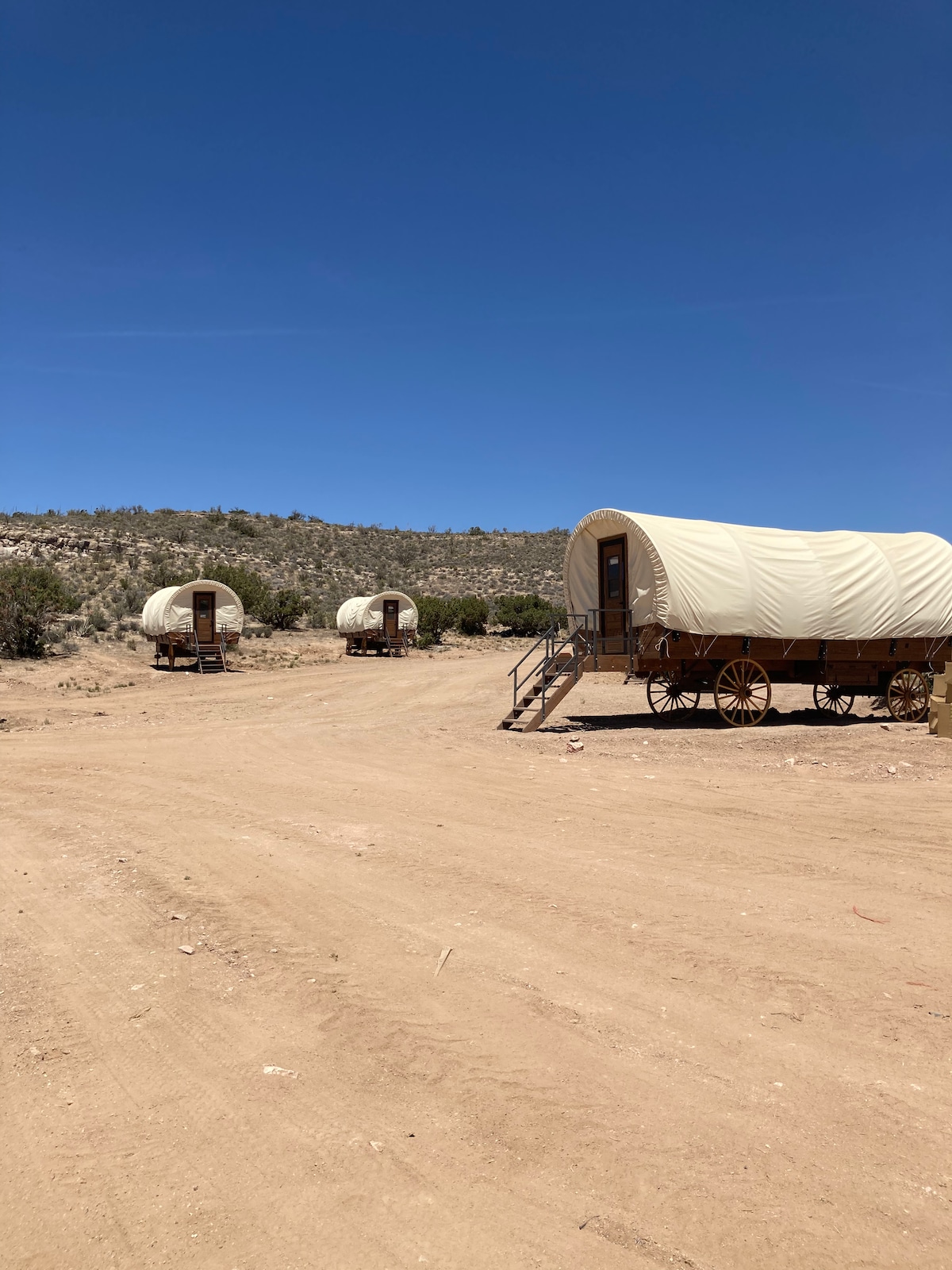Fuja para uma experiência única de glamping ocidental na sua própria caravana acolhedora, misturando o charme do velho mundo com o conforto moderno sob os deslumbrantes céus do deserto de Utah. ✔ 15 minutos até ao Water Canyon Trailhead ✔ 25 minutos até às dunas de areia rosa coral ✔ 40 minutos até ao Parque Estadual Sand Hollow ✔ Carroça coberta privada com ar condicionado e aquecimento ✔ Cama king + futon dobrável 🛏️ ✔ Acesso partilhado à sauna ♨️ ✔ Chuveiros ao ar livre 🚿 ✔ Observação de estrelas e paisagem desértica tranquila 🌌 ★★ Reserve a sua experiência única de glamping hoje ★★