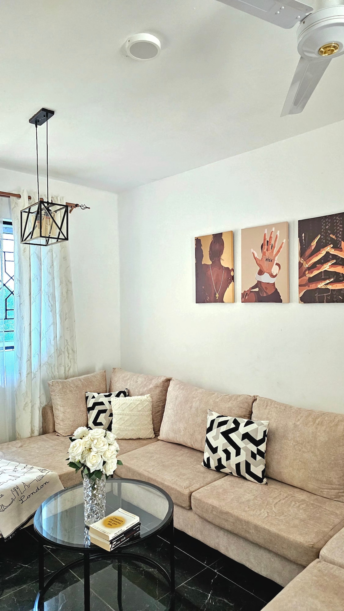 Introducing ThirtyVII . —> A stylish two bedroom apartment in Nyali , Mombasa right on Mt Kenya Road . —> Its 3 mins walk from Voyager beach with close proximity to Promenade mall , Nyali Center , City Mall, supermarkets and food places . —> It is spacious, peaceful & calming .All rooms are fitted with LG AC units .There is free parking , fast wifi, a pool & a lift. The modern touches embellished with woodwork &carefully chosen interior will give a homely feel.