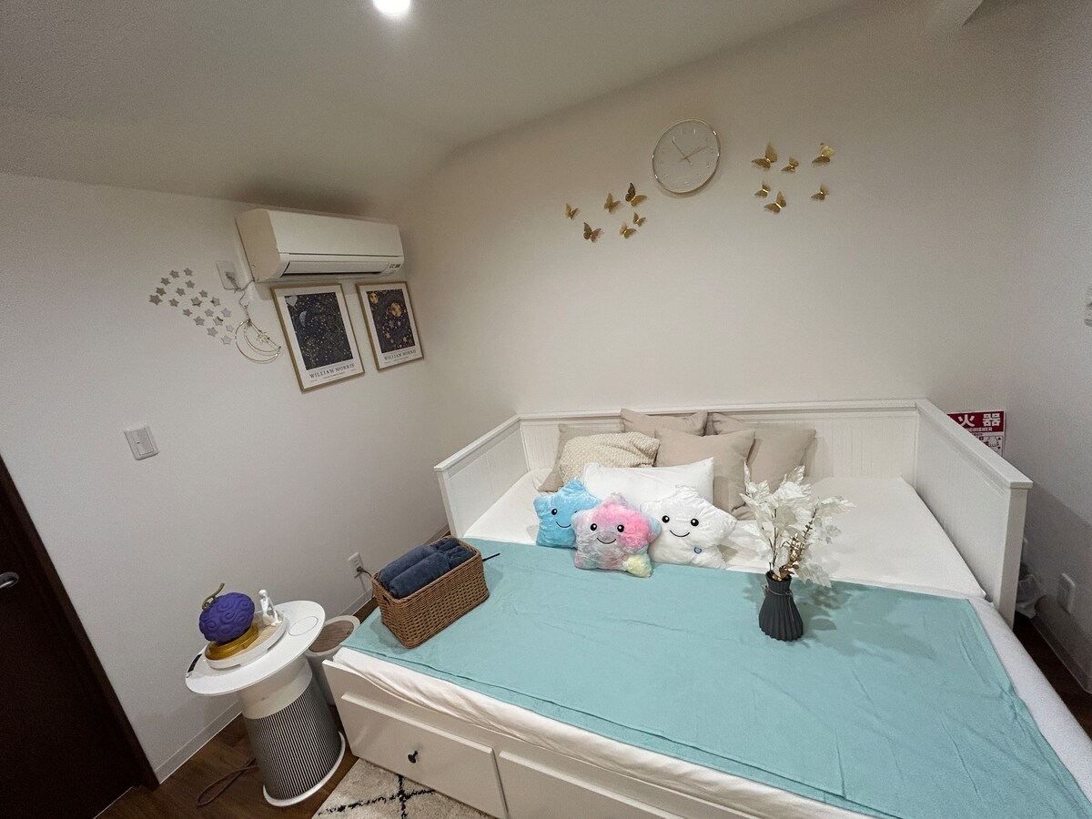 Olá, É um prazer que veja a minha casa de família. —— Esta é uma casa acolhedora e única no piso remodelada de 2024 na Linha Loop de Osaka, diretamente para Tennoji Umeda Shinsaibashi Namba Nipponbashi, USJ, Aeroporto Internacional de Kansai e acesso fácil a muitos destinos populares, como Nara Quioto.A casa fica a cinco minutos a pé da Peach Valley Shopping Street, que está equipada com um Starbucks, uma padaria, uma farmácia, um McDonald's e muito mais. --Novo equipamento de eletrodomésticos na casa, cozinha japonesa totalmente equipada com panela e utensílios, panela de arroz, frigorífico, chaleira quente, micro-ondas, máquina de lavar roupa, banho de água quente grande, toalha de banho, secador de cabelo, champô de sabonete para as mãos, champô, condicionador, sabonete para o corpo, TV, Wi-Fi gratuito 24 horas, 6 pessoas podem acomodar 6 pessoas.Há duas camas individuais no chão do tapete de tatame no primeiro andar, o segundo andar é a sala de estar sala de jantar cozinha área de lazer, e uma sanita japonesa com almofadas aquecidas e água quente para lavar. Existem duas camas grandes, vestiário, varanda e casa de banho no quarto de três andares.[Dois novos colchões à prova de fedor e grosso no quarto no terceiro andar, o uso de espuma macia de látex natural, elasticidade moderada, proporcionam uma sensação de sono confortável, a circunferência exterior do colchão é suportada por uma mola separada reforçada, para que o colchão não seja facilmente agitado e a borda seja efetivamente impedida de flacidez, para que os hóspedes possam desfrutar de uma estadia confortável.] Os hóspedes terão acesso total à propriedade inteira durante a sua estadia e podem reservar com uma família de bonecas ou um grupo de amigos.