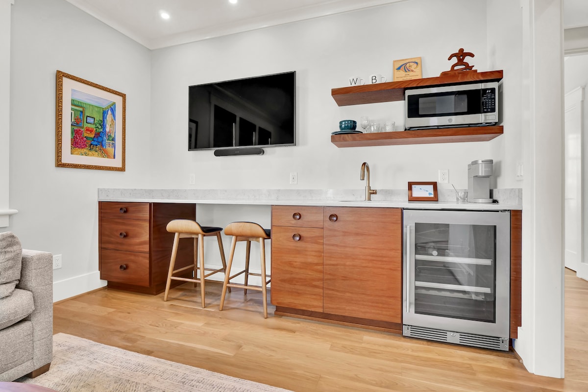 Newly renovated quiet cottage in a prime location—just minutes from Wrightsville Beach, Downtown Wilmington, and UNCW. Walk to breweries, restaurants, and the Arboretum. Includes a queen bed, blackout curtains, full-size fridge, kitchenette, workspace, fast Wi-Fi, and A/C. Ideal for digital nomads, beach lovers, or visiting parents of UNCW students. Spacious living area perfect for yoga, bikes, or boards. Relax, explore, and feel at home near the coast.