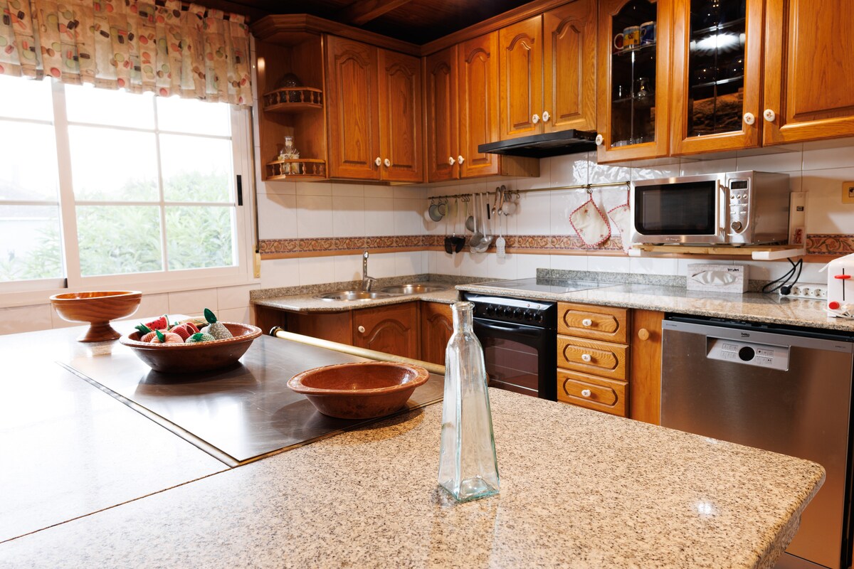 Linda casa de pedra, muito tranquila e confortável em um ambiente rural, mas a apenas 10 minutos do centro de Ourense. Tem acesso direto a partir da estrada sem escadas. Possui dois quartos duplos e dois banheiros completos. A sala de estar é muito espaçosa e tem um sofá-cama e uma cama dobrável. A cozinha está totalmente equipada. Tem um pátio frontal de paralelepípedos e um terraço traseiro com vista para a Ribeira Sacra, onde você pode sair para almoçar, jantar e relaxar.