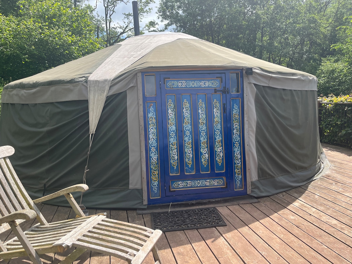 Nossa iurta espaçosa e lindamente equipada, com sua própria banheira de hidromassagem a lenha, é perfeita para uma escapada rural romântica com um toque mongol. Situado à margem de uma floresta madura em uma pequena fazenda, o yurt está totalmente isolado e tem vistas abertas sobre o deslumbrante Vale Dulas na zona rural de Herefordshire. Relaxe na área externa privativa com churrasqueira e fogueira e explore caminhadas locais, pubs, cidades mercantis e locais históricos. Cães são bem-vindos. Confira também nossa 'Cabana do Pastor de Dulas Valley'.