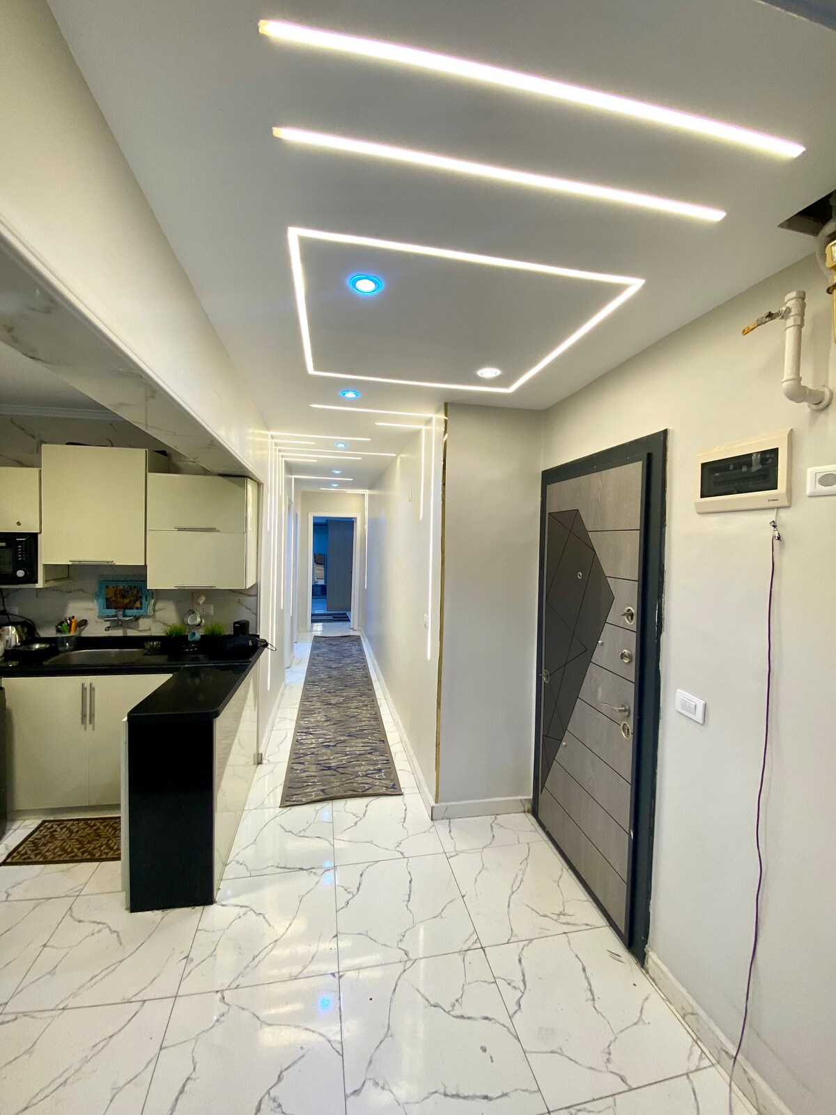 Uma unidade inteira luxuosa com uma vista deslumbrante para o Mar Mediterrâneo, localização central. Nossa localização fica a 10 minutos da bela Montaza, a 10 minutos do shopping San Stefano e ao redor do edifício fica a maior atração da cidade, você pode fumar Shisha no Caffè sob o edifício, comendo peixe dos restaurantes mais famosos perto do edifício. Você não precisa de um carro para ter qualquer coisa necessária ao redor da propriedade.
