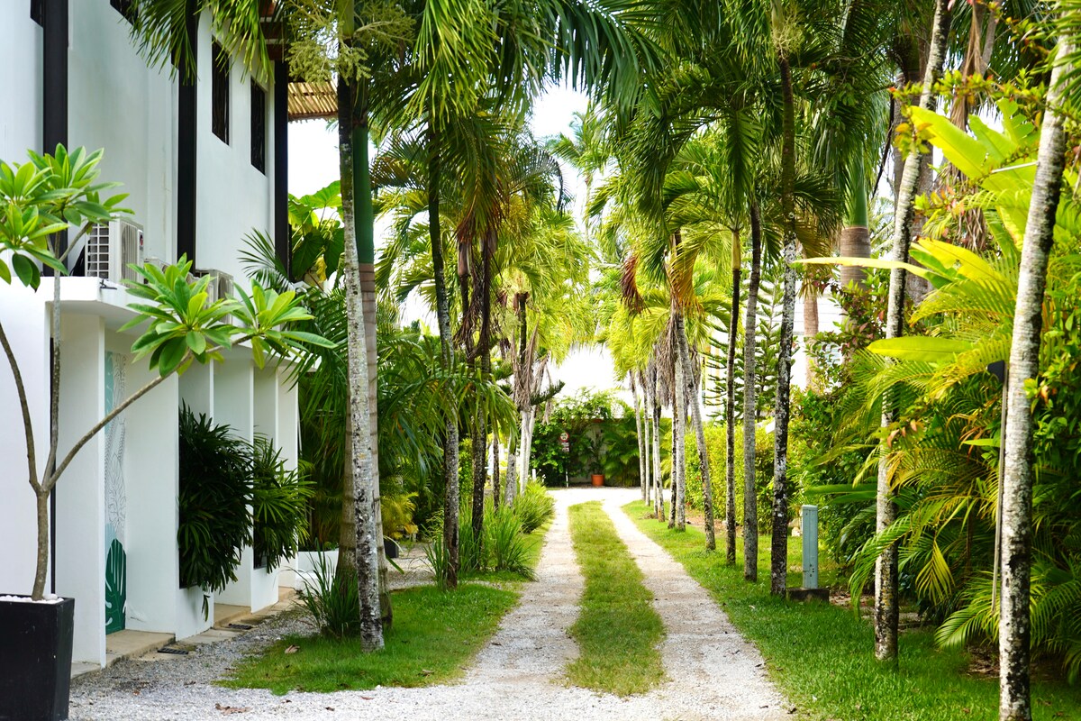 Bungalow com jardim tropical a poucos passos do mar
