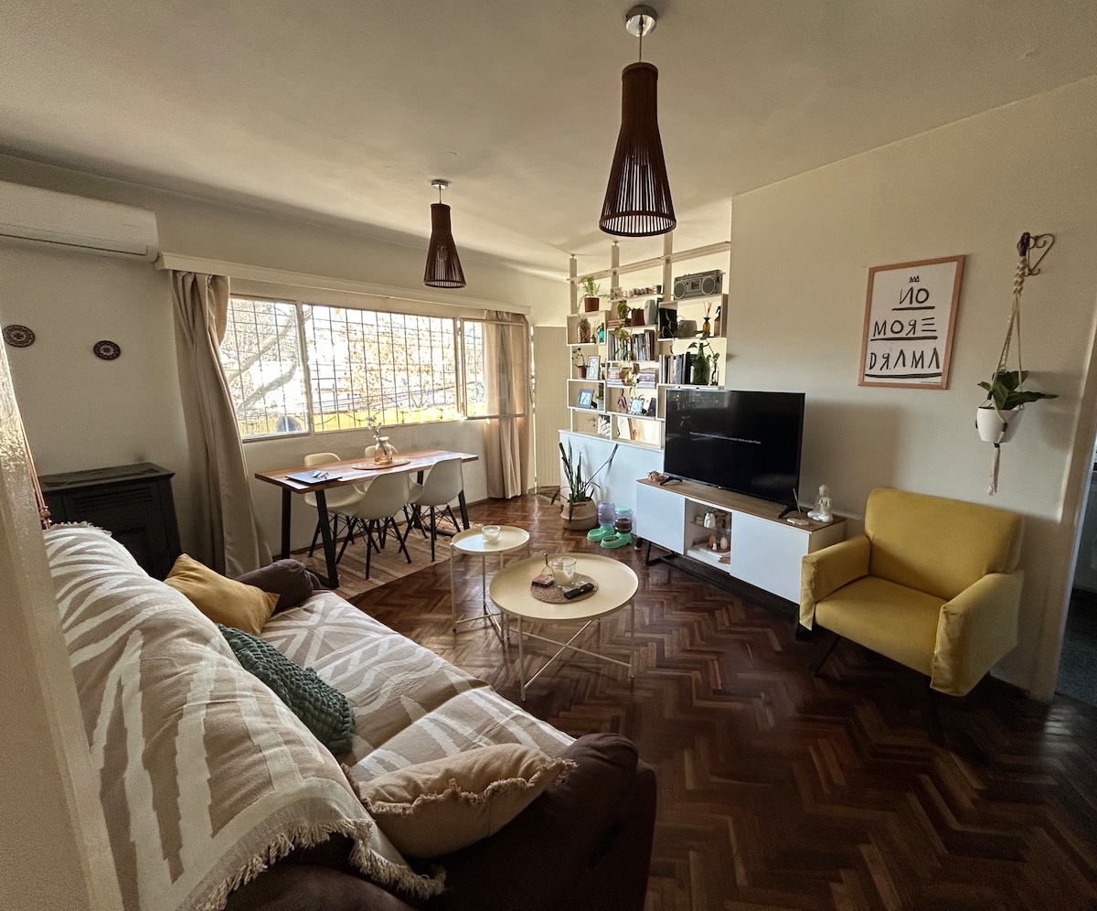 Apartamento em estilo Art Déco em frente ao Mercado del Puerto, tipo duplex, com casa de banho privativa, varanda e janelas do chão ao tecto com vista para o pedestre turístico Pérez Castellano. Agora o quarto tem um sommier de dois lugares. Foi pintado em janeiro de 2019 e o piso da sala foi laminado. Tem várias comodidades, como uma sala de estar, Wi-Fi e uma grande biblioteca com clássicos da literatura uruguaia e latino-americana.