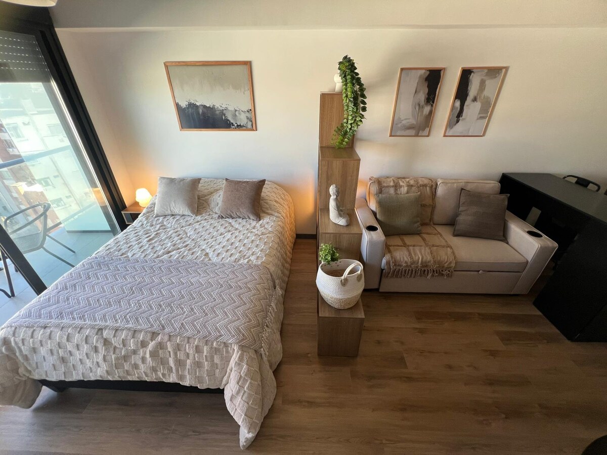 Apartamento central novo para até 3 pessoas, em frente à Plaza Entrevero. Estúdio muito luminoso com cozinha integrada, banheiro completo, cama de solteiro (rebatível), sofá-cama de dois lugares. Totalmente equipado para 3 pessoas: roupa de cama (inclui casaco), conjunto completo de toalhas, louça. Smart TV 40", Netflix. WIFI. Ar-condicionado Edifício novo, portaria e elevadores. Localização ideal, no centro de Montevidéu, a meio quarteirão da avenida principal (serviços e transporte)