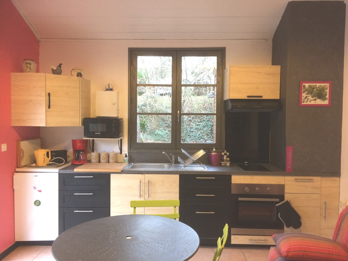 A 5 minutos do centro de Poitiers e localizado numa zona tranquila, este apartamento para 2 pessoas é ideal para uma estadia relaxante. Sala de estar com televisão e Netflix, mesa com topo elevado, cozinha equipada, casa de banho com chuveiro. Jardim privado sem vis-à-vis, mobiliário de jardim elegante e jacuzzi aquecida com chuveiro ao ar livre são os grandes recursos deste encantador apartamento. Quer seja um casal ou com amigos, isso permitirá que descubra a área de Poitiers.