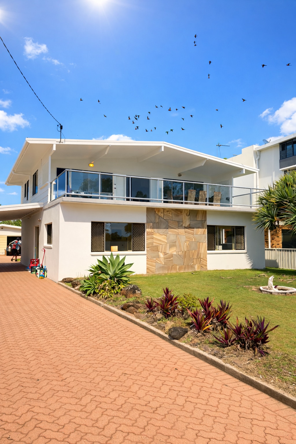 Our family beach home in Moffat Beach is in a quiet neighbourhood. Moffat beach a 450m stroll away & other beaches within walking distance. The concrete floors downstairs are suited to our beach & outdoor lifestyle with timber floors throughout upstairs. An outdoor shower out the front helps to rinse off after a day at the beach! Beautiful sea breezes, ceiling fans in bedrooms and aircon unit upstairs, help balmy Summer nights. The pool during Summer is splendid! A holiday waiting to happen!