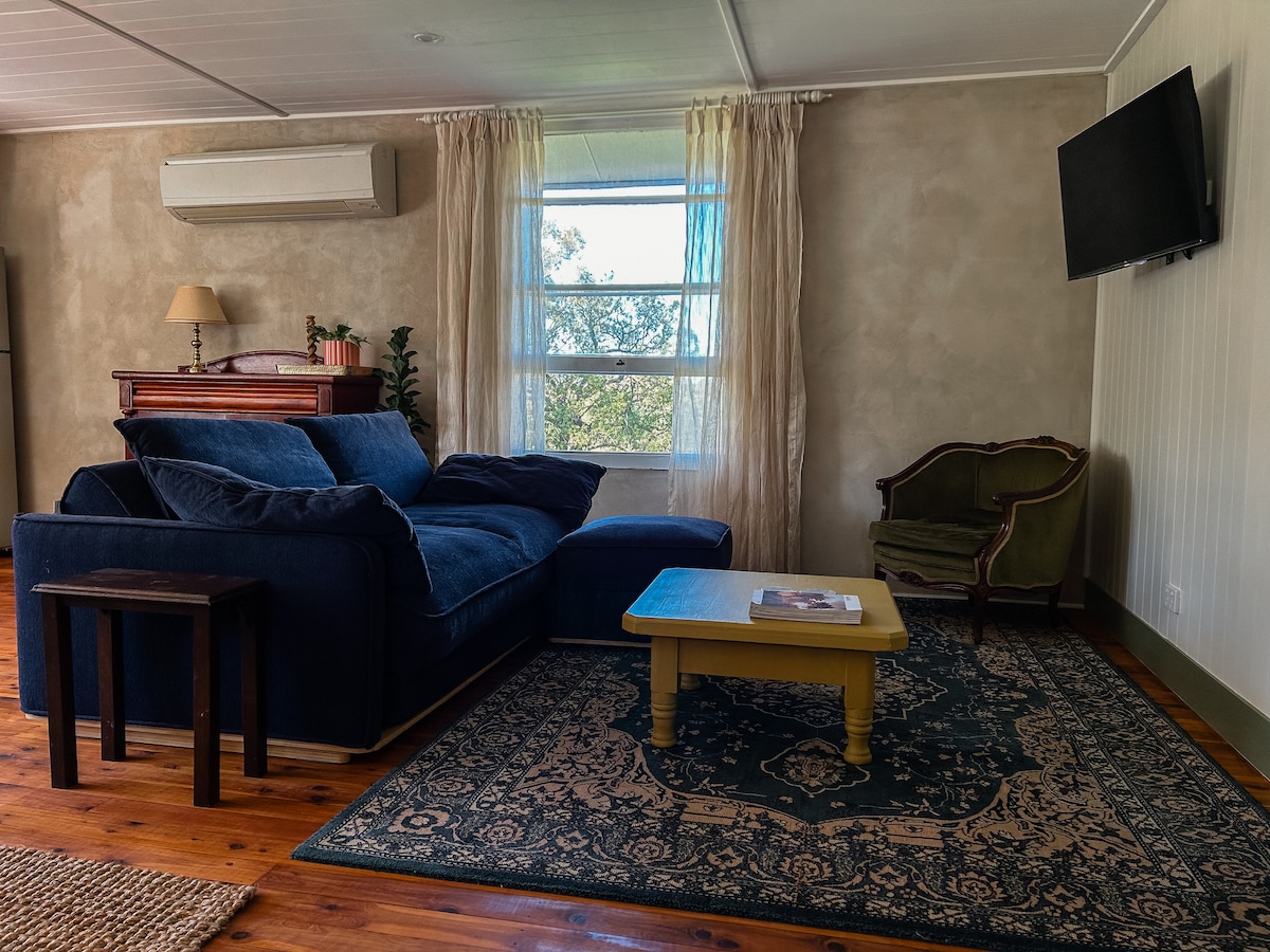 A nossa cabana de hóspedes tipo estúdio totalmente independente fica perto da nossa residência principal, numa propriedade equina bem cuidada em Moonbi. A 20 minutos de carro do coração de Tamworth! Desfrute das vistas da montanha a partir da varanda, se tiver sorte, os cangurus podem descer para se juntar a si. Quer esteja a visitar a região de Tamworth, a participar num evento desportivo, no AELEC com o seu cavalo ou apenas de passagem pela região de Tamworth/New England, a nossa pousada é tranquila, confortável, pacífica e privada.