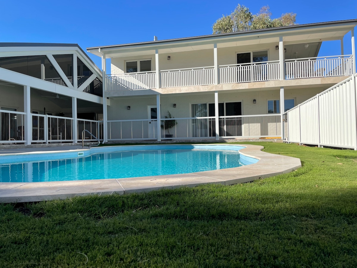 Bem-vindo ao seu oásis tropical na capital da música country da Austrália, Tamworth. O "Corelu" está localizado em Hillvue, perto da AELEC, TRECC, Sports Dome, Gymnastics Centre, Hockey Fields e fica a 5 minutos de carro do CBD. A casa foi lindamente renovada com 4 quartos elegantes, 2 casas de banho, 2 salas de estar espaçosas, áreas de jantar interiores/ exteriores com comodidades para churrascos com vista para a piscina de imersão em água salgada com gás. Consulte o nosso outro anúncio: airbnb.com/h/thefairwaytamworth