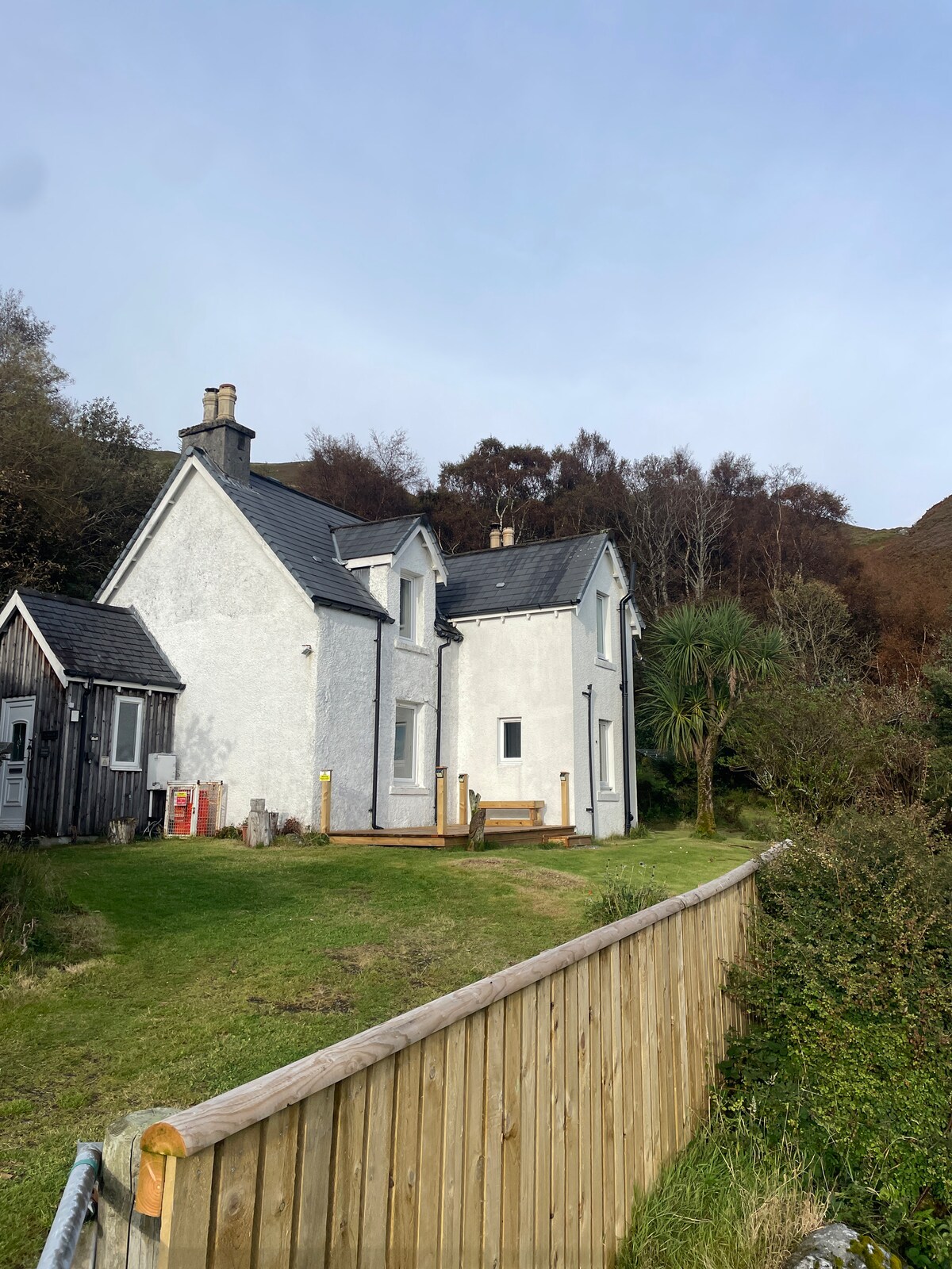 This unique place has a style all of its own. set on the top of a hill with stunning views over the sound of Sleat, taking in breathtaking views of the Isles of Eigg and Rum and in the distant the most westerly point of Scotland. Either sit and relax outside on the decking or down at the fire pit enjoying the peace and tranquility. Enjoy your relaxing break and cosy up inside with under floor heating through out and a warming glow from the log fire.