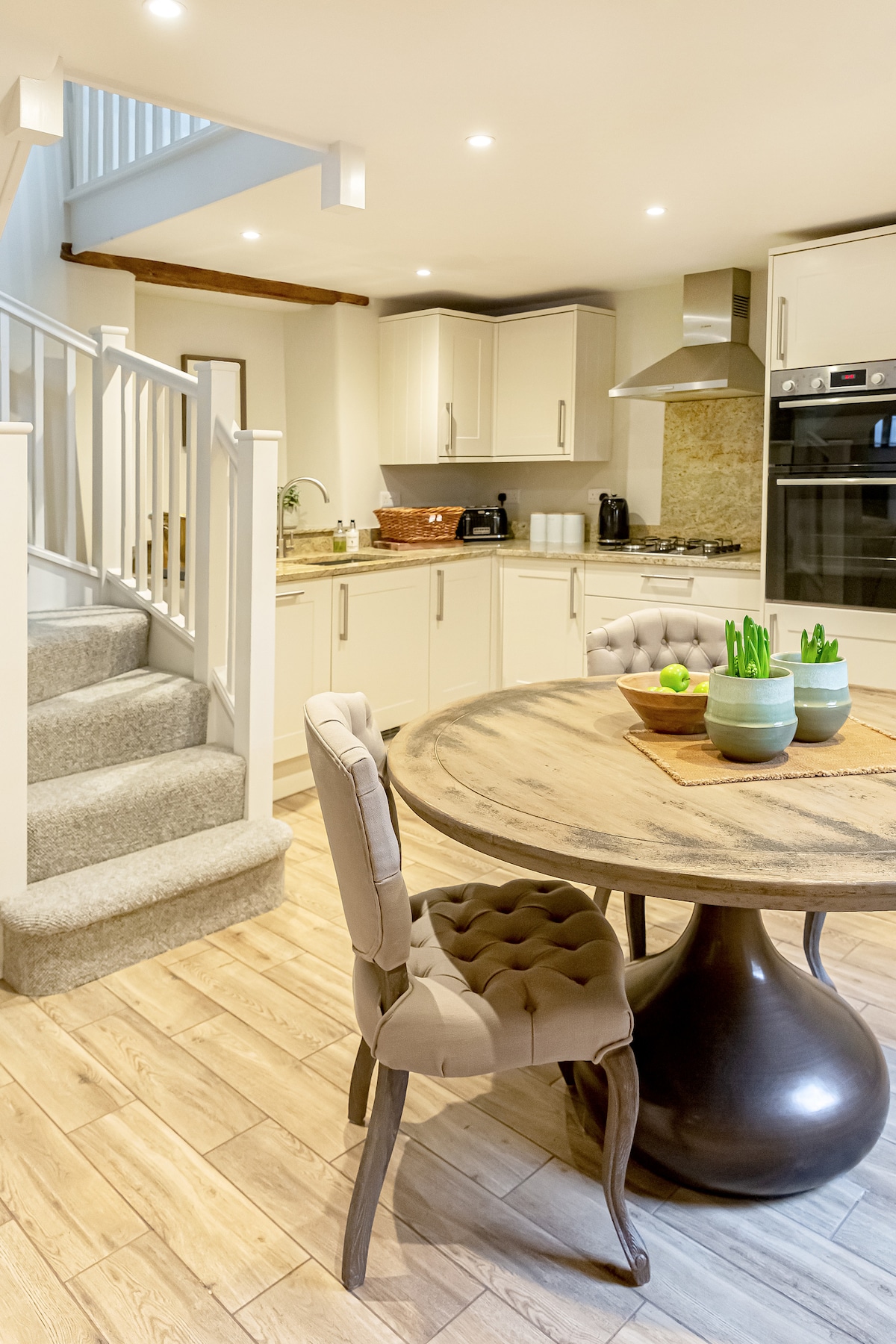 Wisteria Cottage é uma casa de campo de luxo de alta especificação com aquecimento sob o piso, queimador de lenha, grande cozinha/sala de jantar com vista para os campos e um espaço de WC/utilitário no andar de baixo. No andar de cima estão dois quartos com aquecimento central e banheiro aquecido sob o piso e toalha com vigas expostas. O principal tem uma cama king size generosa e a segunda cama, uma cama de solteiro com um estrado para baixo. O banheiro tem uma banheira de rolo com chuveiro e água quente ilimitada. Oferecemos o charme de Cotswold com luxo moderno