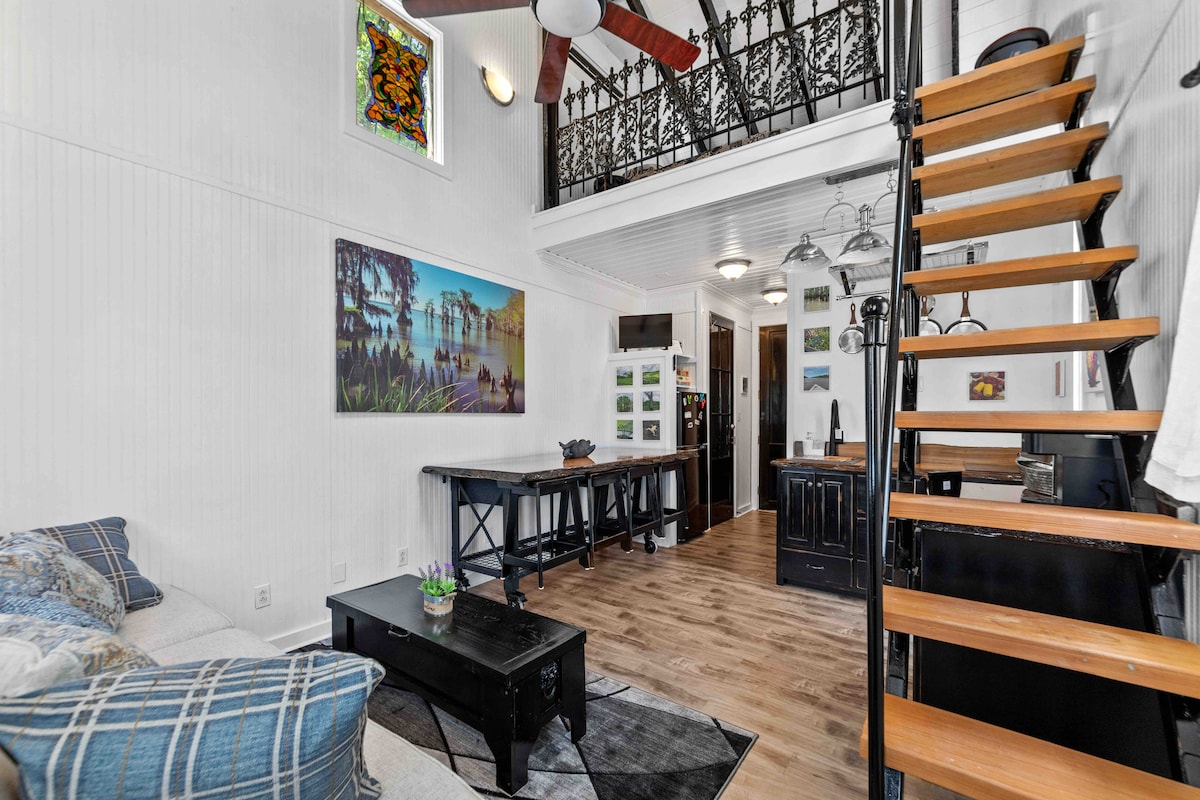 Esta cabana aconchegante e bem equipada é perfeita para observadores de pássaros, escritores ou aqueles que procuram experimentar a serenidade da floresta. O primeiro andar tem uma grande sala de estar/jantar com um sofá, mesa de jantar, cozinha moderna totalmente mobiliada e banheiro completo. Há um colchão de ar de tamanho duplo disponível no andar de cima. O andar de baixo contém um quarto com cama queen size e banheiro completo. A cabana fica a 8 milhas ao norte do centro de St. Francisville e perto de compras, caminhadas e restaurantes.