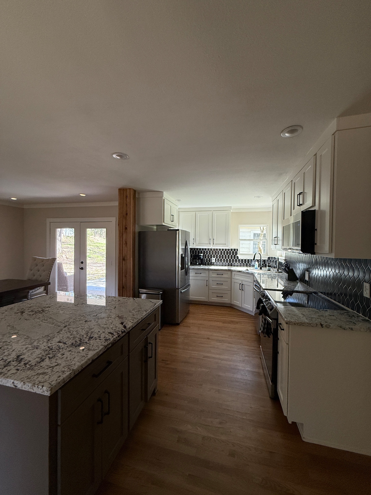 Welcome to our newly renovated barndominium, where modern comfort meets rustic charm on Ellison Creek Reservoir aka Lake Lone Star. This spacious retreat boasts four bedrooms, two full baths, two inviting living spaces, and two fully equipped kitchens, providing the perfect setting for multi-family gatherings. Comfortably sleeps 10, max guests 12 Enjoy the prime lakefront property with outdoor entertainment areas, including turf for games, a propane fire pit, and a small dock for lounging.