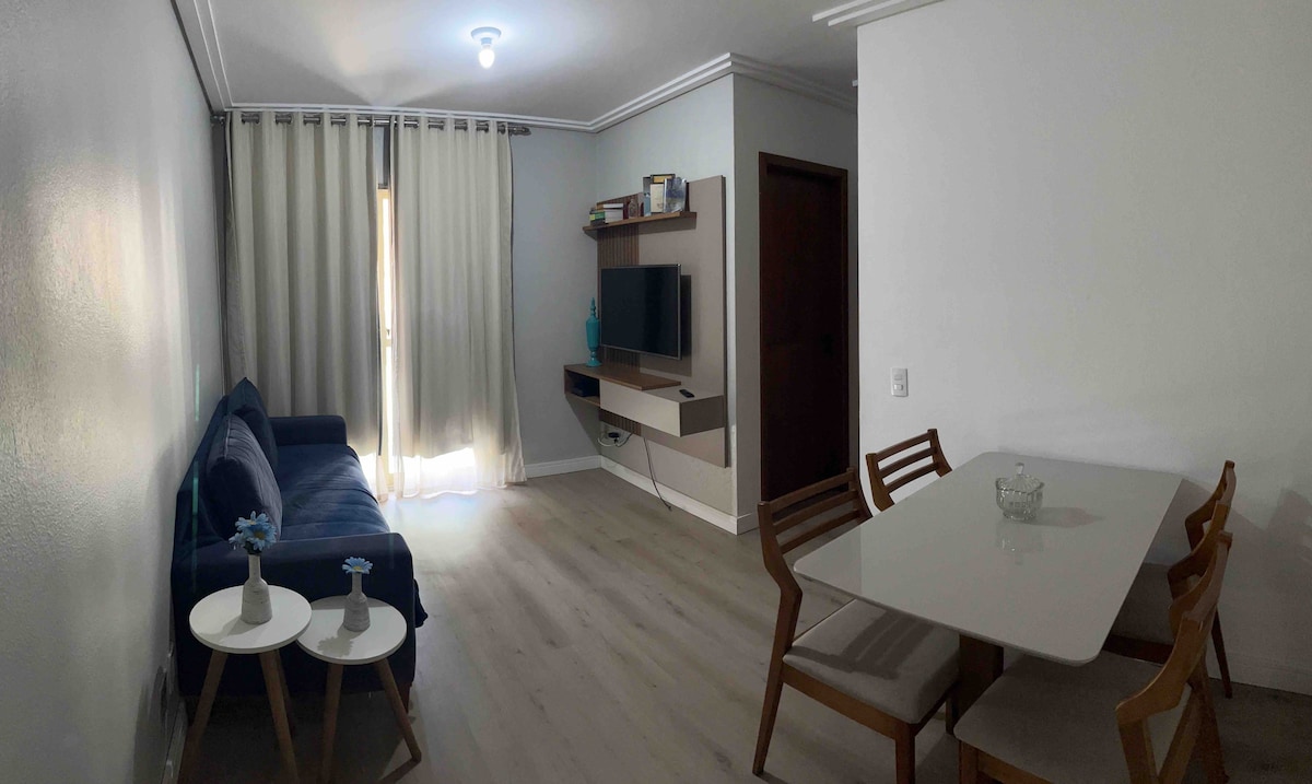 Apt inteiro, ar cond, garagem, 5min praia, apt 107