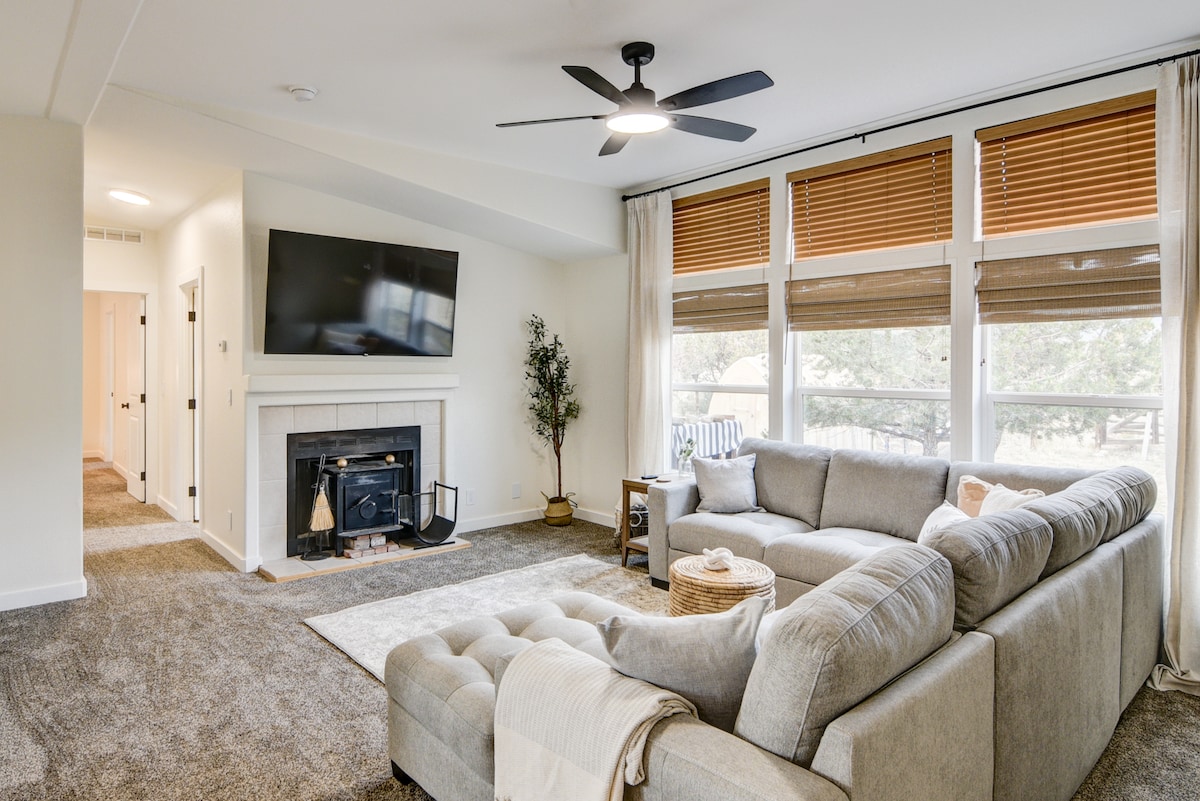 Venha desfrutar dos nossos 5 hectares privados de árvores Pinon com a conveniência de estar a 5 minutos da cidade. Desfrute das alegrias das crianças na propriedade e das vistas de montanhas incríveis com a vida selvagem que frequenta o nosso "quintal". Relaxe na nossa área de hóspedes privada trancada do resto da nossa casa, incluindo uma kitchenette e uma lavandaria, todas separadas do resto da casa por uma porta personalizada e trancada. Aceitamos cães, mas não podemos aceitar gatos devido a alergias de outros hóspedes. Há uma taxa para animais de estimação.
