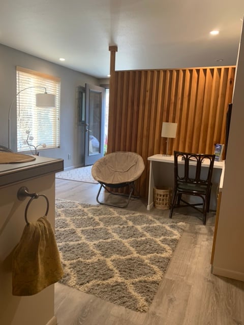 Este é um apartamento estúdio acolhedor, no térreo, em um edifício mais novo. O pátio da frente é exclusivo para os hóspedes do estúdio. Estacionamento em frente à unidade ou atrás do edifício. Esta unidade é compatível com ADA. A cozinha é modesta, com uma placa quente, micro-ondas e um forno elétrico. Café e chá. Tetos abobadados dão a aparência de espaço, e o banheiro é muito grande. Calor/AC e tardes ensolaradas. Este é um pequeno lugar mágico, com tudo o que o Monte Shasta tem a oferecer. Lic# STR-CHES420