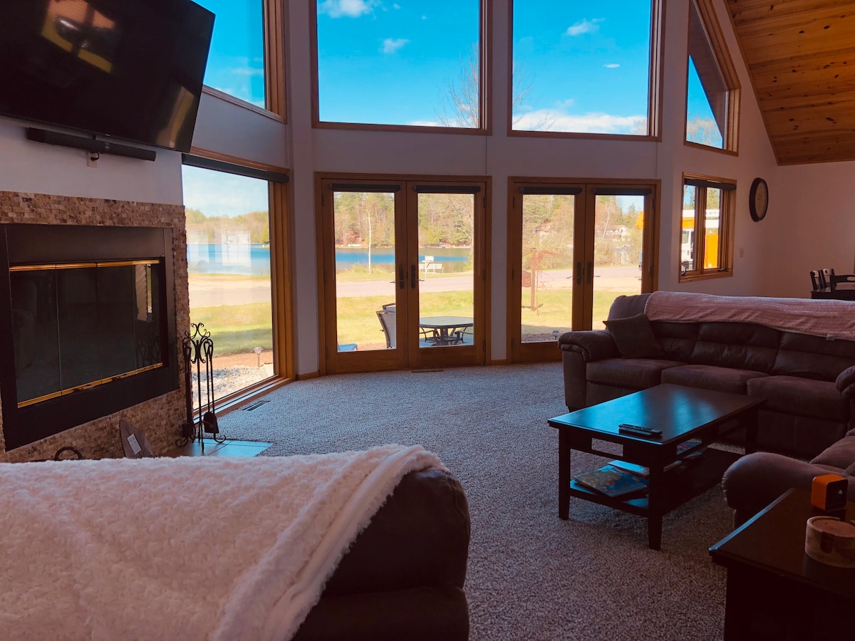 Beautiful lakefront cabin. Indoor pool coming by end of July with rec & game room . Breathtaking views of chain lake with great fishing & swimming. Fire pit & grill. Kitchen /BR fully equipped . Washer, dryer, iron, A/C, Wi-fi. Located on ATV & snowmobile trails with great restaurants, bars, grocery stores. Casino/ski resort within minutes. Kayaks and bikes available for use with rental. Sleeps 20 comfortably. There are several places in Lakewood, Townsend and Wabeno that rent UTV/ATV.