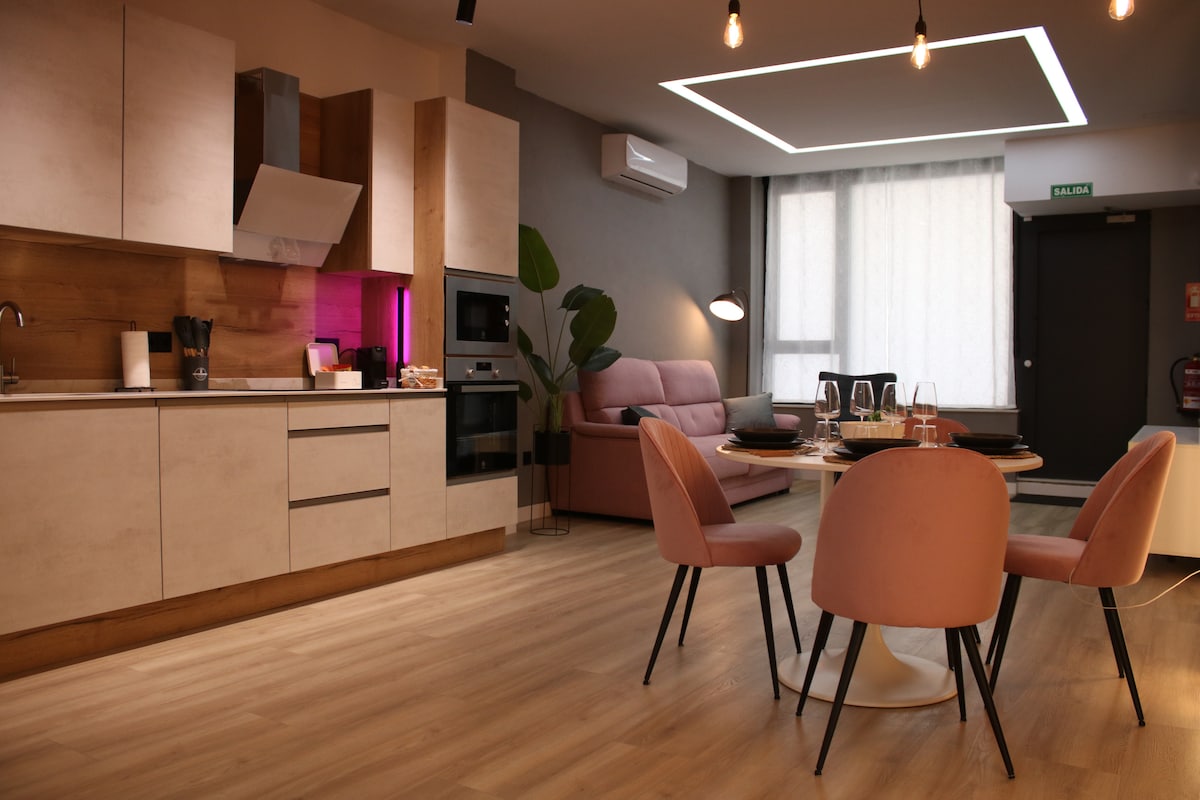 Céntrico y muy luminoso. Aire acondicionado en todas las habitaciones y salón. Todas las estancias disponen de ventanales a la Gran Vía. Colchones de calidad para tu merecido descanso. Ascensor. Llegada autónoma cerradura inteligente. Wifi 300 Mb. Aunque es ideal para 6 huéspedes, tiene capacidad y equipamiento para un máximo de 8. A 200 metros de la plaza mayor para que te desplaces caminando Super Carrefour Expres en planta baja abierto todos los días de la semana de 09:00 a 22:00. VUT 37/693
