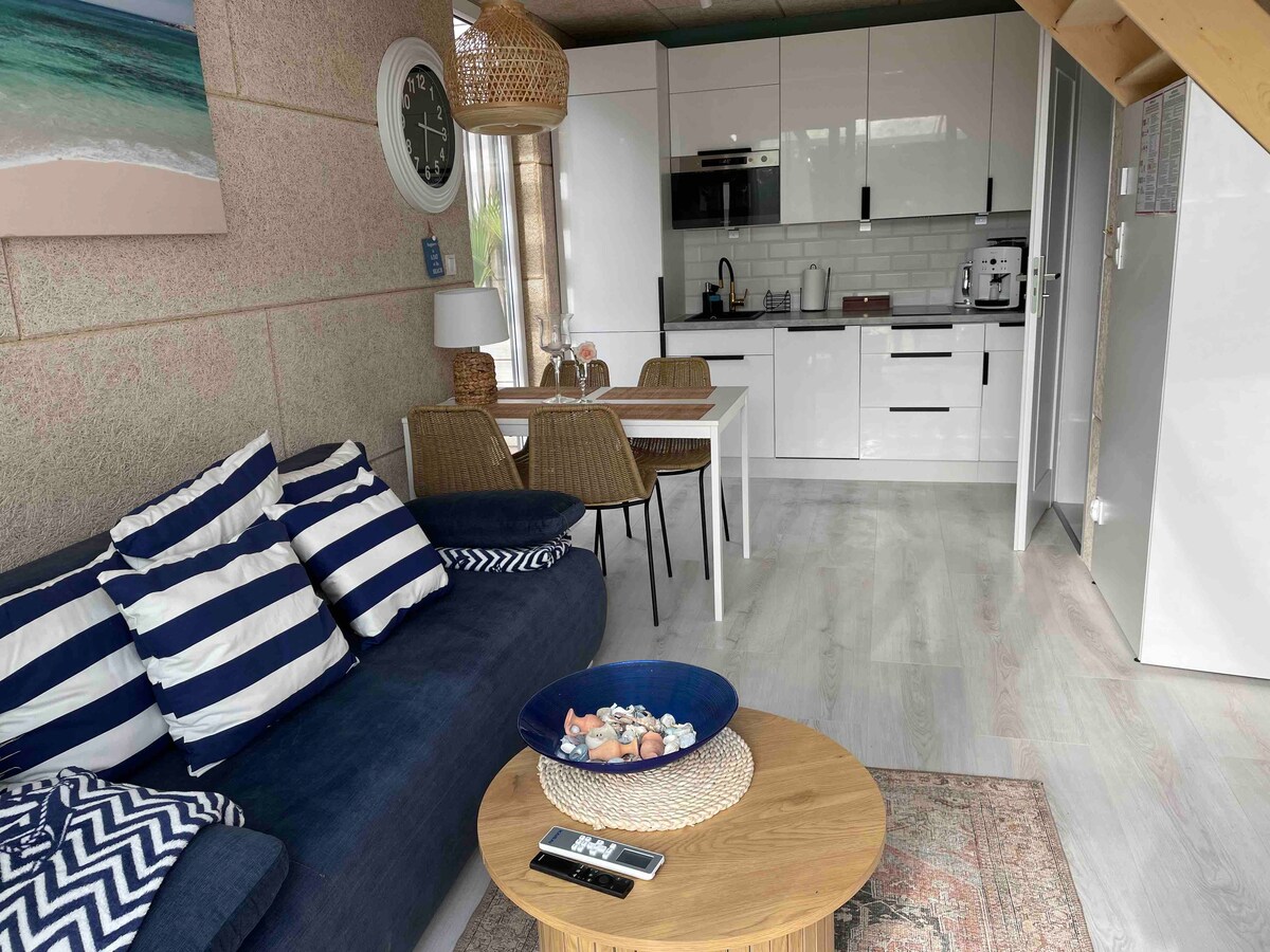 Linda casa nova adaptada para 6 pessoas com banheiro e cozinha. Totalmente equipado. No andar de cima há 2 quartos. No piso térreo, uma sala de estar com uma cozinha (geladeira grande, máquina de lavar louça, micro-ondas, chaleira, fogão de indução) e um banheiro. Estacionamento gratuito, churrasqueiras, área de fogueira, bicicletas e atrações para crianças (trampolim, caixa de areia, parque infantil, etc.). A casa está localizada a 1700m do mar, em uma parte tranquila de Pogorzelica (cerca de 15 minutos a pé, 3 minutos de carro).