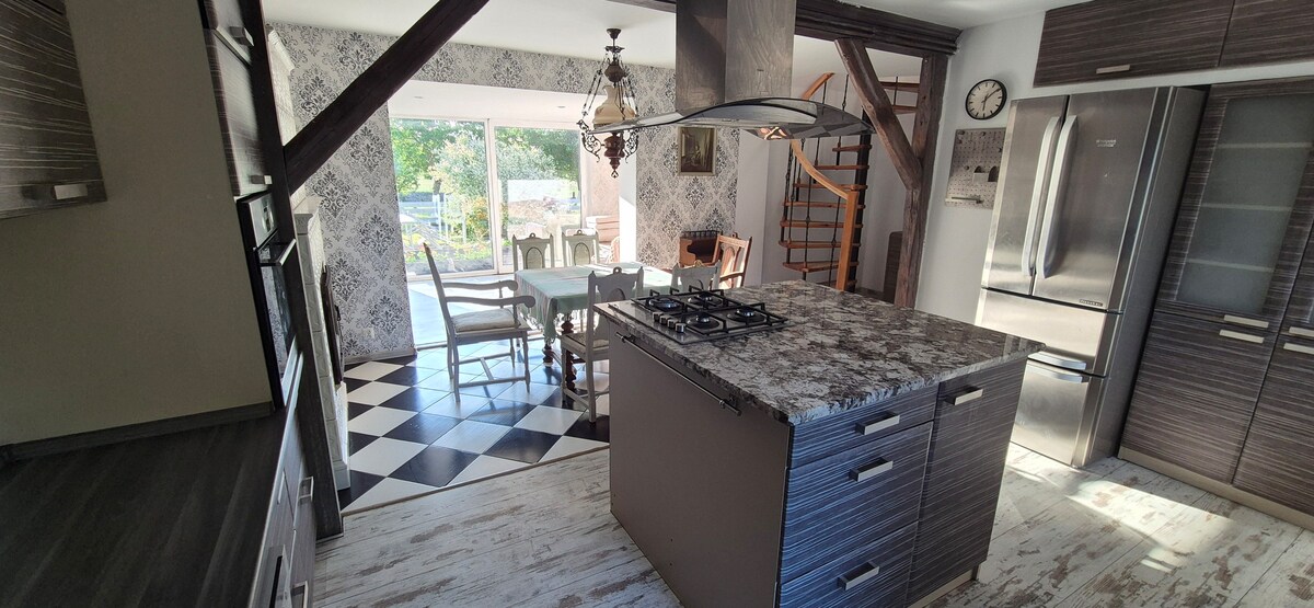 Longe da cidade grande, o nosso "Farmer 's Cottage" está localizado em um terreno pitoresco na orla da reserva florestal "Wiejkowski las". Aqui você pode experimentar a paz completa e a natureza pura! Um passeio pela floresta, passando por vários pântanos e lagos, relaxando lendo um livro perto da lareira ou uma viagem ao Mar Báltico? Tudo isto e muito mais é o que pode esperar aqui!