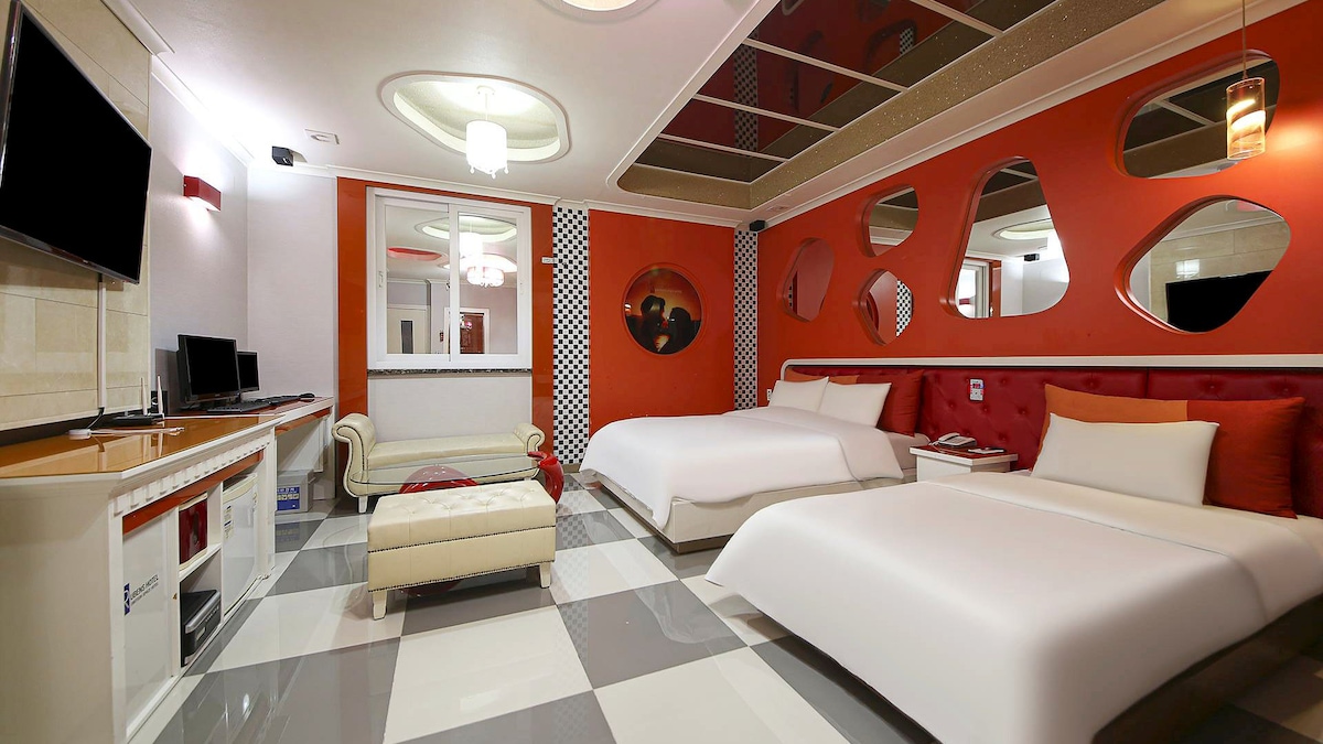 Com base em 2 pessoas/máximo 3 pessoas (KRW 20.000 por pessoa com mais de 4 anos serão incorridos ao adicionar o número padrão de pessoas) Quarto + Casa de banho/15 pyeong 1 cama dupla + 1 cama individual > Hotel formal certificado de 2 estrelas da Organização de Turismo da Coreia > Obtenha o melhor nível de gestão de higiene (verde) > Hotel com o único terraço privado, spa, piscina em Suncheon > Quartos espaçosos do que a maioria dos hotéis em Suncheon (15 pyeong ~ 35 pyeong) > Use roupa de cama limpa e confortável (ganso da Alemanha) > Design Simples e Moderno > Perto da Estação Suncheon (2,3 km), Terminal Rodoviário de Suncheon (3,6 km), Aeroporto de Yeosu (15,7 km) > Sunwan National Garden (1,3 km), Sunwan Wetland (8,4 km), Yeosu Nangman Pocha Street (36,7 km, dentro de 30 minutos)