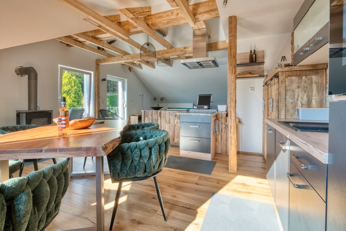 No apartamento Talblick vai sentir-se confortável. Um apartamento totalmente mobilado e espaçoso para até 5 pessoas está à sua espera. Os antigos elementos de madeira que relembram a longa história da casa proporcionam um ambiente acolhedor e a bela vista dos prados, pastos e bosques convida-o a relaxar na varanda coberta. O apartamento tem cerca de 90 m2.