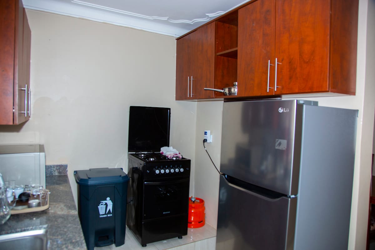 This special peaceful stylish comfortable and warm place is close to everything and literally a walkable distance to acacia mall making it easy to plan your visit. The lavatory has a shower a sink and an african basket that gives you a feel of Africa. The bedroom has a big wardrobe and a cozy comfortable bed with a bed side lamp. The sitting room is a luxurious place with art pieces that give you a calm feel. Looking forward to your stay as you enjoy the comfort, quirky and cool place. See you