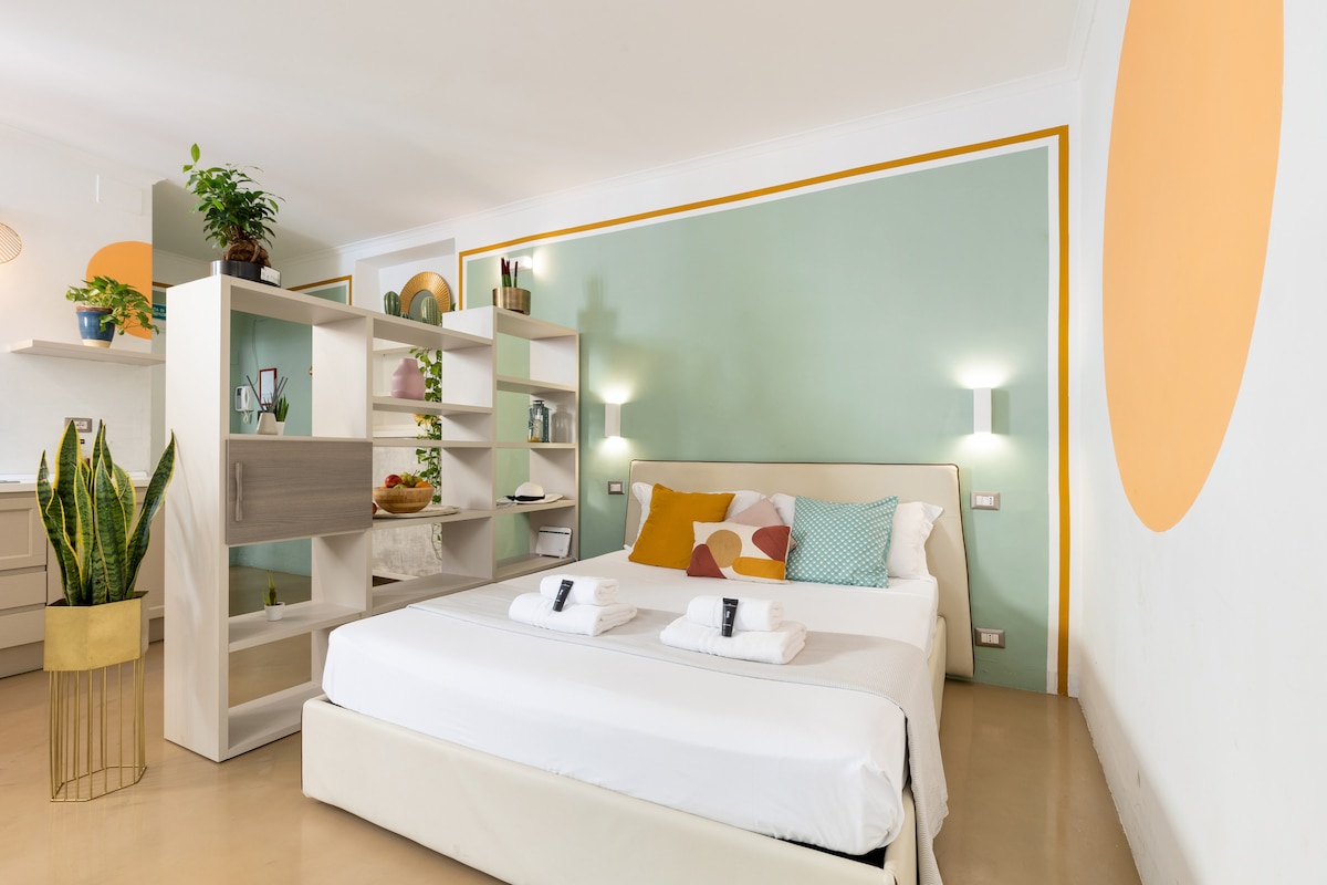 Delicioso apartamento estúdio recentemente renovado, equipado com todos os confortos, localizado dentro de um complexo residencial histórico do início do século XX com um grande pátio interno e serviço de concierge. Área central de Roma, bairro de San Giovanni. A 15 minutos a pé da famosa Basílica de San Giovanni in Laterano. A 10 minutos do Mercado de Pulgas de Roma. Coliseu acessível com uma caminhada. 500 metros da estação de metro. Ótima ligação ao Aeroporto de Fiumicino.