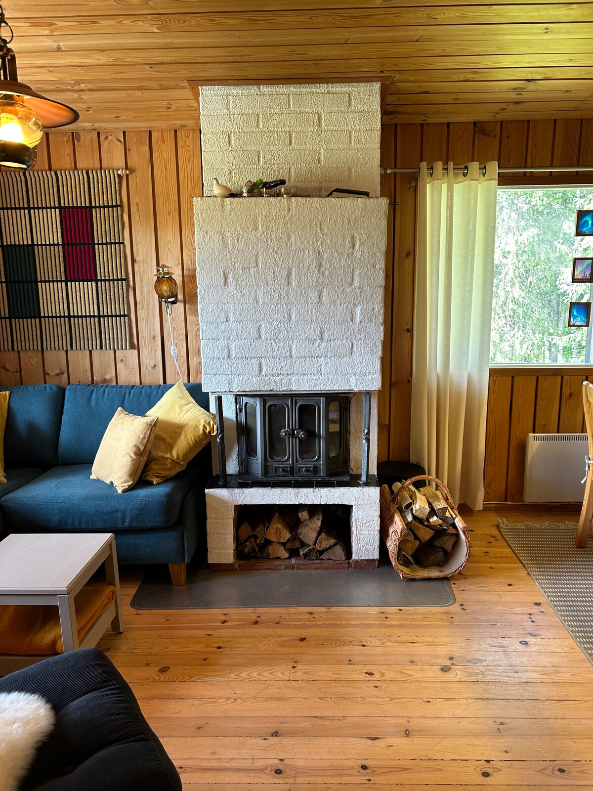 A cabana oferece espaços de acomodação confortáveis e uma cozinha bem equipada, onde você pode preparar refeições deliciosas após longos dias. Há dois quartos no piso térreo, um dos quais tem camas separáveis. Lá em cima há um grande beliche, WC e um sofá-futon dobrável para uma cama extra. A sauna está localizada em um edifício ao ar livre separado, acessado através de um terraço envidraçado. Uma lareira ao ar livre também está situada no terraço, onde você pode desfrutar até mesmo das noites mais frias.