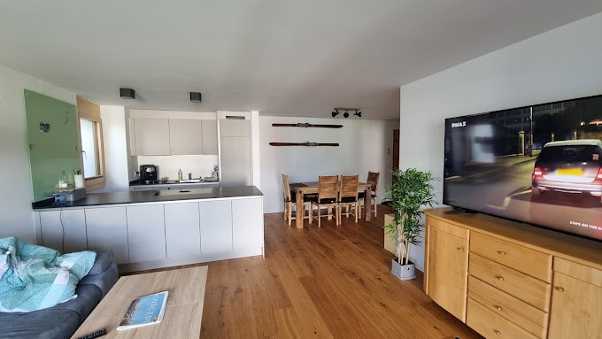 Um pé no teleférico de esqui. A localização dificilmente poderia ter sido melhor. A encosta de prática para crianças também fica mesmo ao lado da casa! É o tamanho perfeito para até 4 hóspedes. Estacionamento subterrâneo incluído. Esquiar no dia da chegada/partida sem problemas. Esquie E SAIA. 50'' TV UHD (4K) com inúmeros canais, internet (Netflix, etc.). Além da cozinha equipada, a roupa de cama e as toalhas também podem ser fornecidas mediante pedido (30 CHF por pessoa, caso contrário, basta trazer a sua)