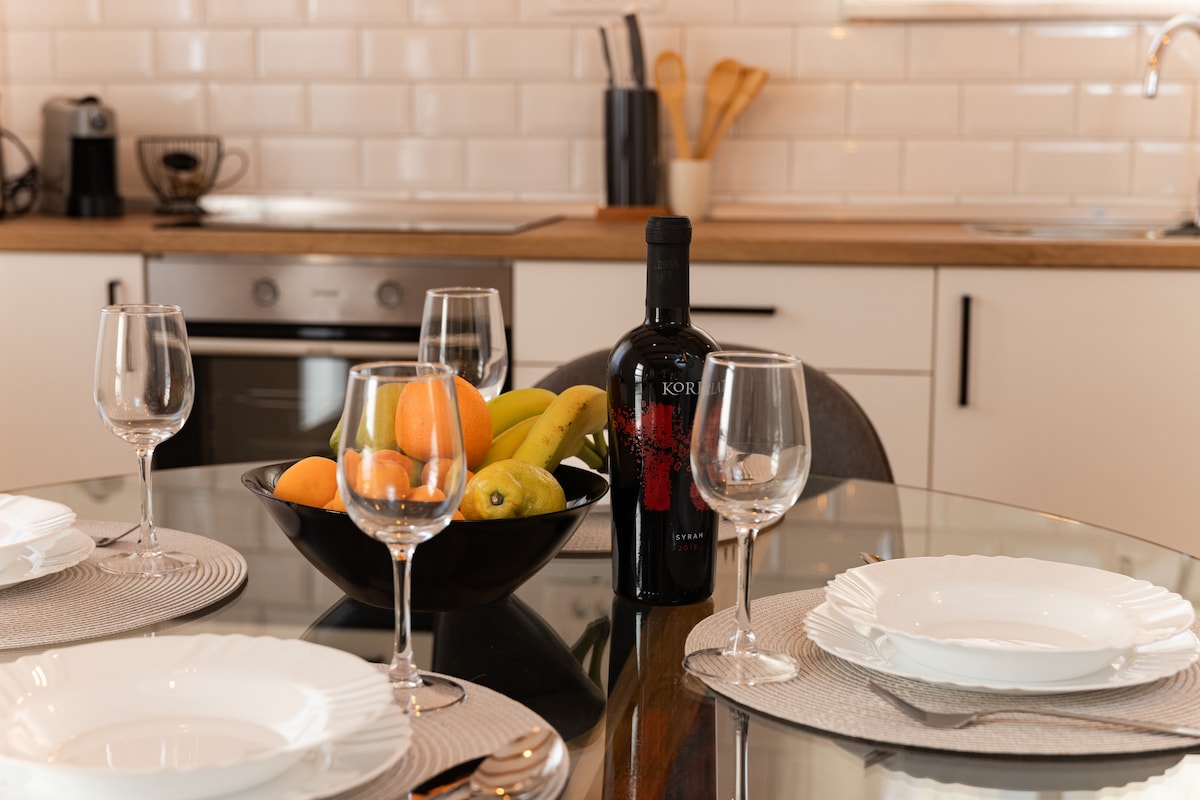 Sinta-se em casa nesta pequena cidade mediterrânea, quer você queira relaxar ou ter férias ativas. Oferecemos apartamento de dois quartos com ar condicionado, Wi-Fi, estacionamento gratuito em frente ao apartamento e um bilhete de estacionamento para o município de Tisno. Cada quarto tem seu próprio banheiro e varanda. Praias encantadoras estão a uma curta distância a pé, assim como um dos melhores restaurantes de Tisno. Nós somos amigos da bicicleta e não vemos a hora de nos encontrarmos!
