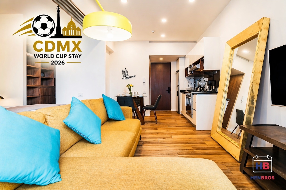 ⚽🏆 O CAMPEONATO DO MUNDO é melhor apreciado aqui! Fique num loft espetacular na ZONA MAIS SEGURA E EXCLUSIVA da Cidade do México. A apenas 35 minutos do Estádio Banorte e a um quarteirão de transportes diretos de e para o estádio, chegar lá será muito fácil. Desfrute de uma cama confortável para 2 pessoas, uma cozinha equipada, rede Wi-Fi de alta velocidade e uma espetacular SMART TV de 70” para celebrar cada golo. Comodidades e estacionamento disponíveis dentro do edifício. Damos-lhe as boas-vindas com bebidas frescas e POPCORN 🍿 para dar início à festa do Campeonato do Mundo ⚽🎉