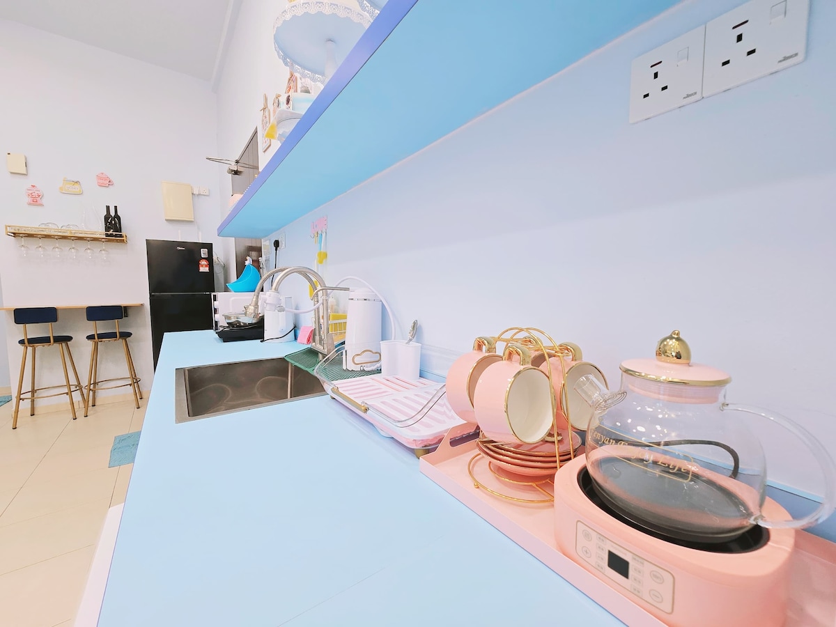 Welcome to Sky&Blue Homestay, a cozy and fun-filled family-friendly apartment located in Johor Bahru. Perfect for family vacations, short getaways with friends, birthday or festival celebrations. Private indoor slide, ocean ball pit, swing, climbing wall, magical magnetic wall with magnetic toys, LEGO sets, mini toy kitchen, projector, bar area & tea corner, private garage with direct access to unit, fully air-conditioning, WiFi, fridge, induction cooker, microwave, washing machine+dryer.