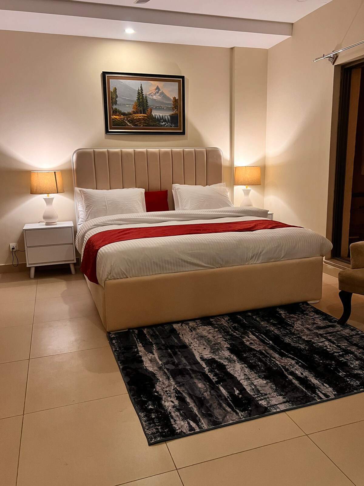 Entre nos apartamentos de 3 quartos do Flamingo Grand, os apartamentos de serviço mais sofisticados e esteticamente emocionantes de Islamabad. Curta uma experiência segura e elegante neste lugar bem-localizado. Se você está visitando Islamabad por prazer ou trabalho, nós do flamingo garantimos uma experiência 5 estrelas. Os hóspedes também desfrutam de um estacionamento gratuito e seguro dedicado, Wi-Fi gratuito e experiência de visualização de suas séries de TV favoritas no LED inteligente de 65 polegadas.