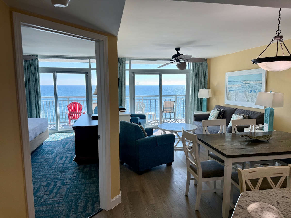 Crie algumas memórias neste espaço único e familiar. Estamos muito contentes por dizer que as praias, piscinas e restaurantes estão agora abertos! As principais características deste condomínio incluem: * Oceanfront Three Bedroom at Sandy Beach Resort * 3 Camas King com Sofá-cama em LR, até 8 camas, lençóis fornecidos * Cozinha totalmente equipada, com mesa de cozinha * Wi-Fi GRATUITO de alta velocidade * Estacionamento GRATUITO * Piscinas interiores e exteriores, rios preguiçosos e banheiras de hidromassagem * A uma curta caminhada do 2nd Avenue Pier e do Family Kingdom Amusement Park