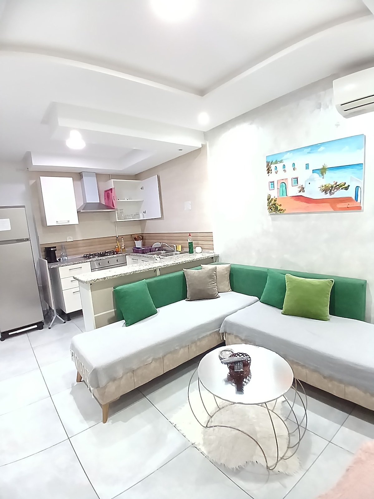Situado no segundo andar, num bairro baixo, o nosso espaço oferece vistas deslumbrantes e ininterruptas. Desfrute da espaçosa varanda da frente e da cozinha que se abre para um alpendre para trás para relaxar ou jantar ao ar livre. Convenientemente localizado perto de todas as comodidades e para desfrutar da praia a uma curta caminhada de 10 minutos. é perfeito para explorar Hammamet a pé, tendo uma área de estacionamento gratuita dedicada. O espaço tem ar condicionado, Wi-Fi e uma cozinha totalmente equipada para sua comodidade.