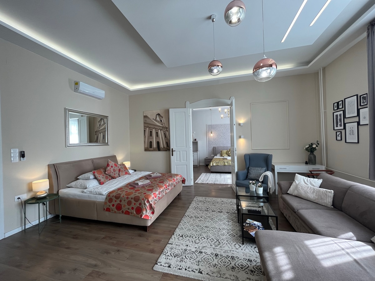 No coração de Debrecen, a poucos minutos da agitação da Feira do Advento, o nosso apartamento Jókai Deluxe 4* espera por si. É uma escolha ideal para aqueles que querem experimentar as luzes festivas do centro da cidade, o cheiro de vinho quente e a atmosfera de inverno, tudo em conforto moderno de 4 estrelas. Apartamento adequado para bebés no centro da cidade de Debrecen, com um parque de estacionamento interior fechado. A Praça Principal, a Grande Igreja, restaurantes, museus, lojas, centros comerciais, ruas pedonais, pubs, terraços, paragens de elétrico ficam a poucos minutos de distância. Alojamento adequado para bebés.