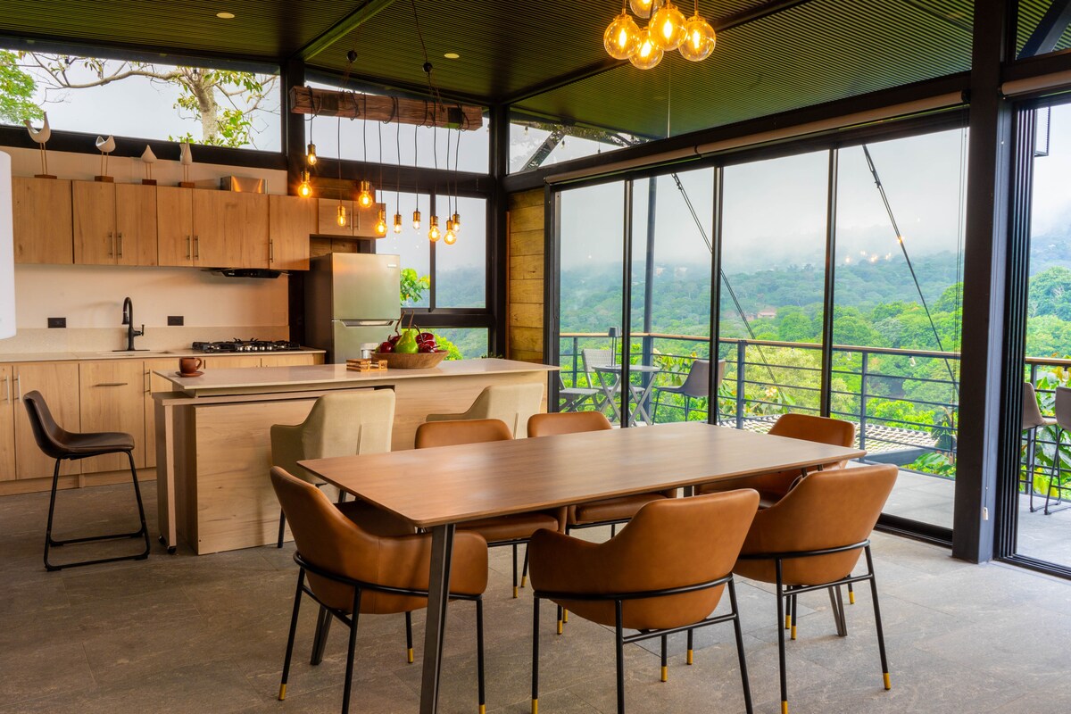 A Piemonte Casa, em Concepción de Ataco, dá vida a uma casa de autor, onde a arquitetura funde o tradicional e o moderno em espaços acolhedores e sofisticados, com muita arte e luz natural. Três quartos e três banheiros completos oferecem capacidade para 7 hóspedes, tornando-a ideal para pequenos grupos que gostam de compartilhar em privacidade com o máximo conforto. A cozinha aberta, a lareira na sala central e o terraço com vista para as montanhas oferecem ambientes requintados para compartilhar.