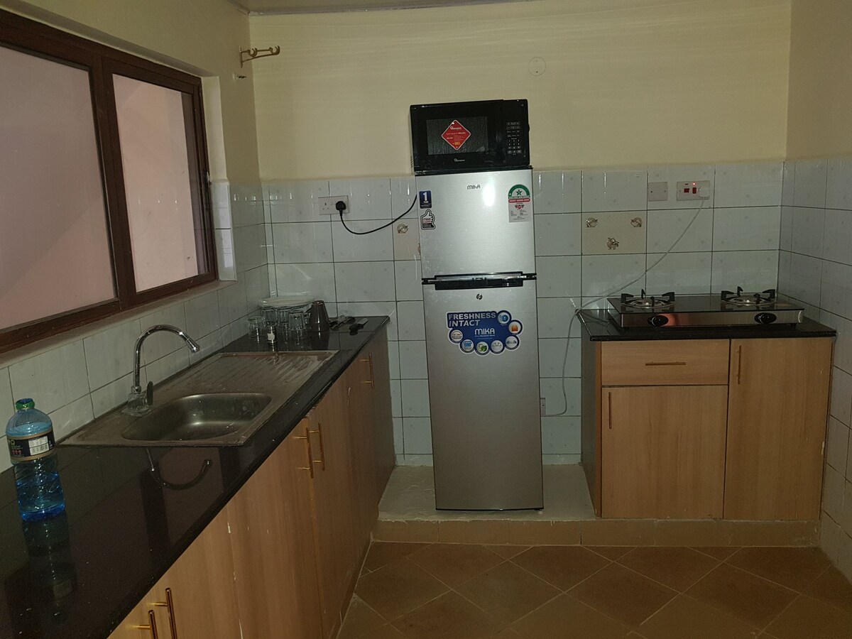 Este espaço é um apartamento acolhedor de 1 quarto com check-in autónomo totalmente mobilado localizado em Embakasi, perto do aeroporto JKIA e da Escola de Aviação da África Oriental. Tem uma confortável cama queen-size, kitchenette, casa de banho com chuveiro quente, Wi-Fi, Netflix e centro de lavandaria. O apartamento é vigiado 24 horas por dia, 7 dias por semana, com privacidade garant Tem um grande parque de estacionamento acessível a partir da frente e de trás. O terraço tem uma bela vista para o pôr do sol do aeroporto.