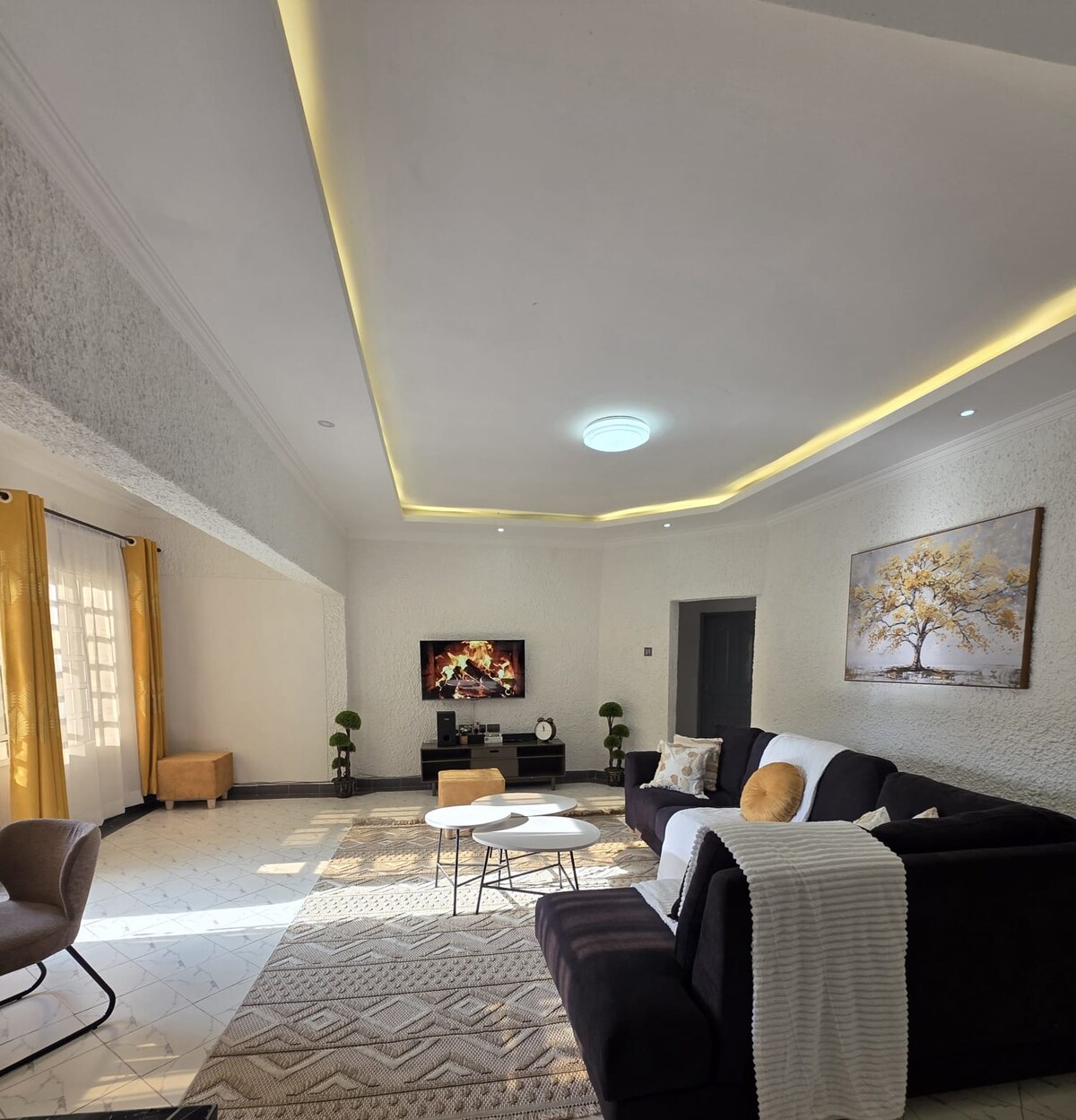 Acorde com o canto dos pássaros e o ar fresco de Naivasha nesta espaçosa e moderna villa escondida num bairro tranquilo e seguro perto do lago. Desfrute de uma área de estar em plano aberto e luminosa com sofás macios, televisão inteligente, espaço de jantar elegante, Wi-Fi rápido, cozinha totalmente equipada, estacionamento amplo e belos jardins. Ideal para famílias, grupos ou casais que procuram uma escapadela tranquila, mas conveniente, em Naivasha.
