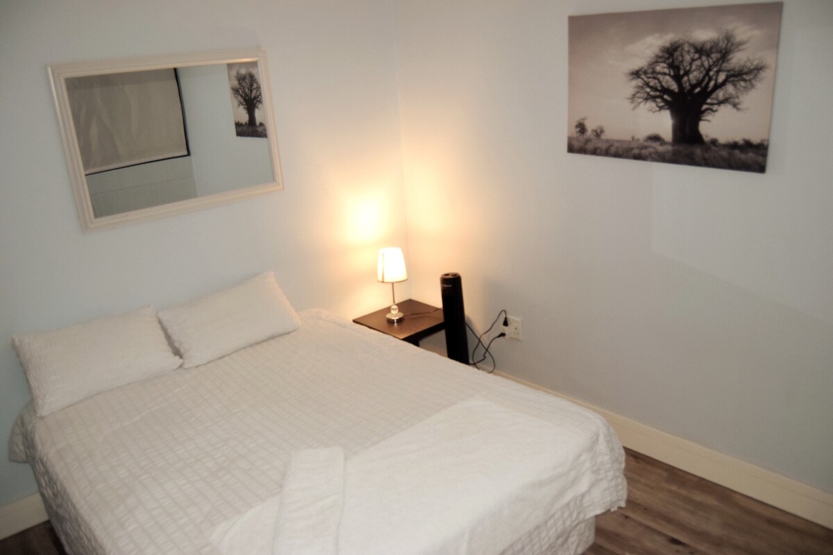 Two bedrooms, each with its own bathroom, and 2 working stations. The main bedroom has aircon, the other a fan. Walking distance from city center and restaurants. Wifi included. Safe semi-business area, with an occupied home and physiotherapy practice on the same property for extra security. The swimming pool area is shared with owner.