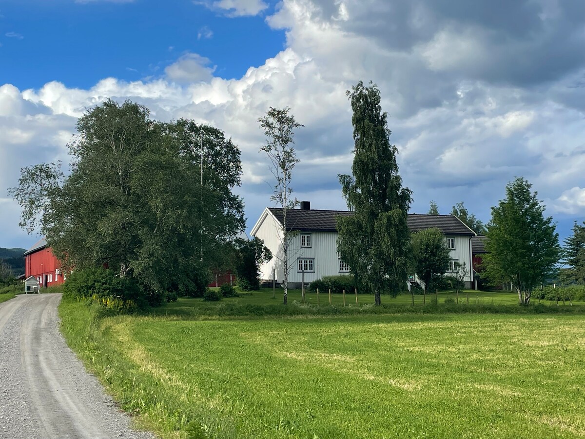 A casa da avó no campo, rodeada por campos de vegetais, montanhas e uma bela paisagem cultural. Silêncio e natureza. Perto de ótimas ciclovias, caminhadas de montanha com vista para o mar, mar e praia. Em Dun Gård - connosco que gere a casa de hóspedes, também temos o restaurante da quinta Matgarasjen, onde servimos comida caseira com produtos locais - da quinta à mesa!