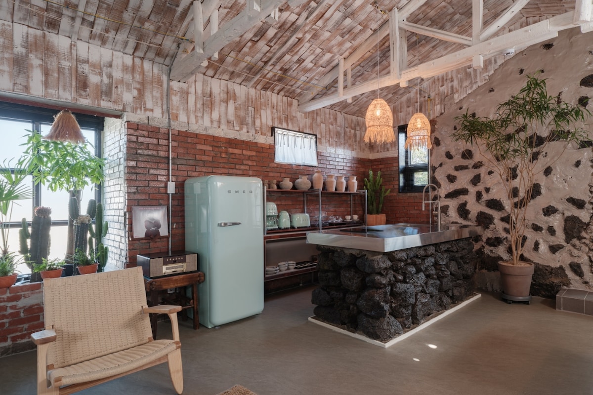 Sinta a singularidade e o charme vintage ao mesmo tempo em uma casa que renasceu após a reforma completa de um antigo armazém de pedra em Jeju. O toca-discos e as obras originais ocupam o espaço, e na banheira com vista para o muro de pedra e o jardim simples Você pode aliviar o estresse. Ao ar livre, há um espaço de estar onde você pode relaxar. Através da remodelação do antigo armazém de pedra de Jeju, você pode sentir o charme único e vintage ao mesmo tempo na casa reconstruída. O toca-discos e as obras de arte ocupam o espaço da banheira, com vista para o muro de pedra e o jardim rural. pode aliviar a fadiga Área de estar ao ar livre para relaxar Experimente o charme único e vintage da casa renascida, remodelando o antigo armazém de pedra de Jeju. Toca-discos e obras originais ocupam o espaço de uma banheira com paredes de pedra e um jardim simples. Você pode aliviar seu cansaço do lado de fora, onde há um lounge.