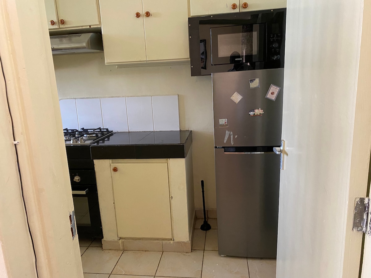 Two-bedroom apartment in a serene and secure neighborhood of Kisumu. It is conveniently located within walking distance to public transport, shopping malls, markets, and places of worship. Tastefully furnished for your comfort with a maximum capacity of five people; it is the perfect place to stay on holiday or business, for family or individual trips, short or long-stays.