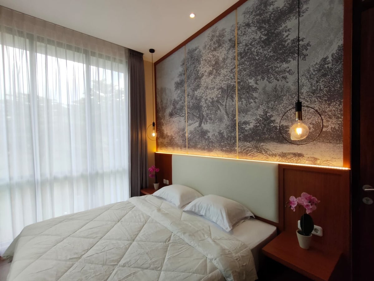 Localizado na cidade de Sentul, para uma pequena família, este lugar é um fim de semana perfeito para relaxar. Para as pessoas que têm que trabalhar em casa, deixe este lugar ser, com um Wi-Fi rápido, um quarto privativo com uma escrivaninha, uma varanda espaçosa e um sofá-cama. Você terá outra varanda espaçosa em seu próprio quarto principal. Também usamos o Google Nest, uma Smart TV, lâmpadas inteligentes, uma fechadura automática e 3 CFTVs para mantê-lo em segurança. Você terá seu próprio zelador (morando separadamente), caso precise de algo.